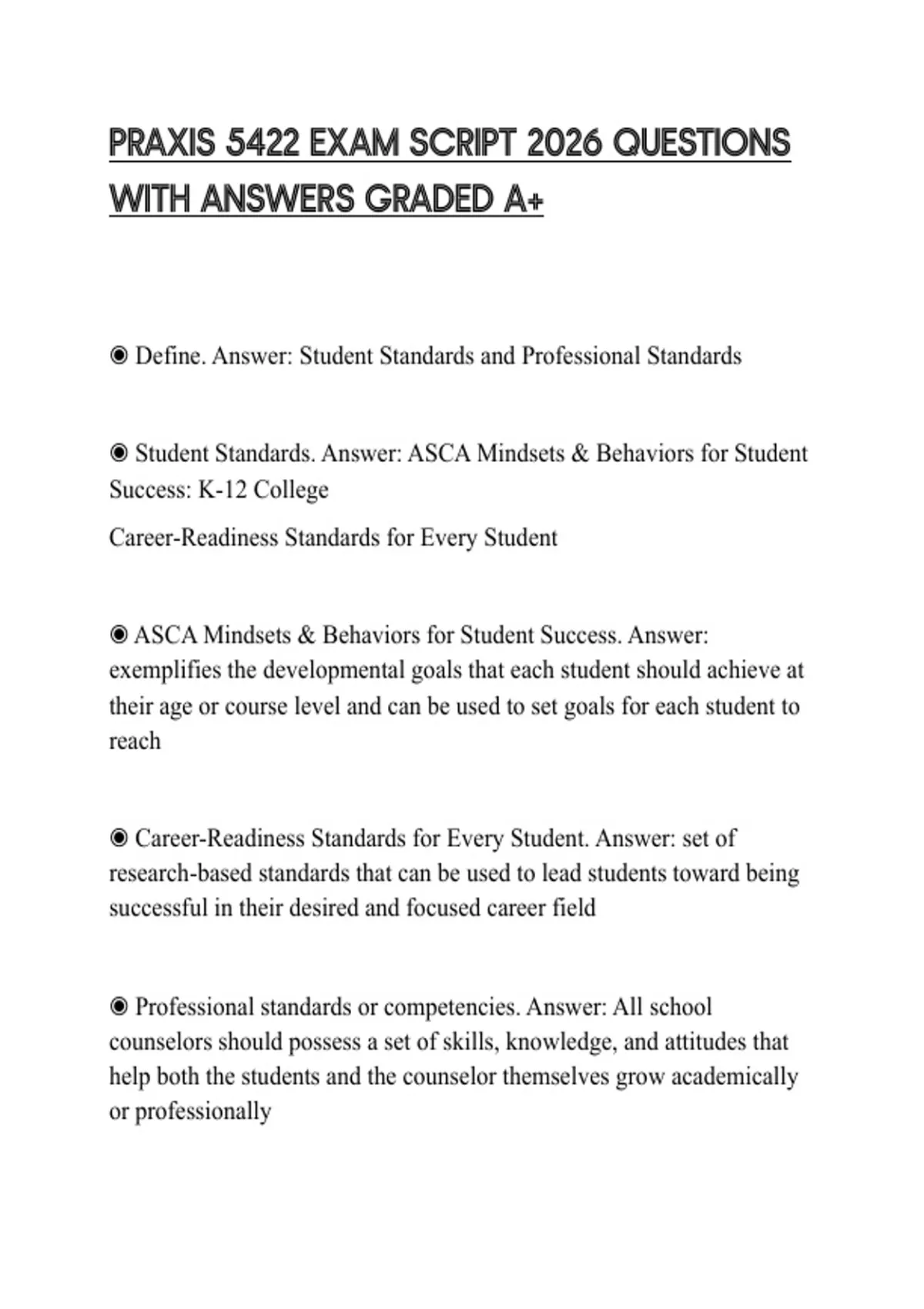 ◉ Student Standards. Answer: ASCA Mindsets & Behaviors for Student