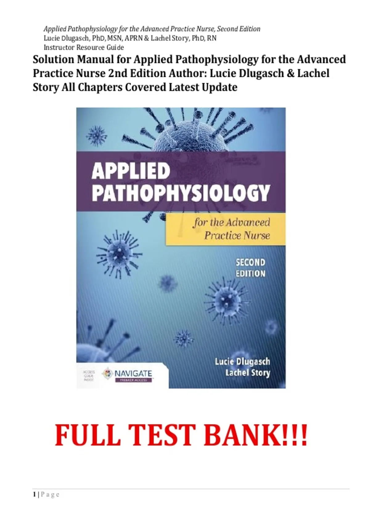 Solution Manual for Applied Pathophysiology for the Advanced Practice Nurse 2nd Edition Author: Lucie Dlugasch & Lachel Story All Chapters Covered Latest Update