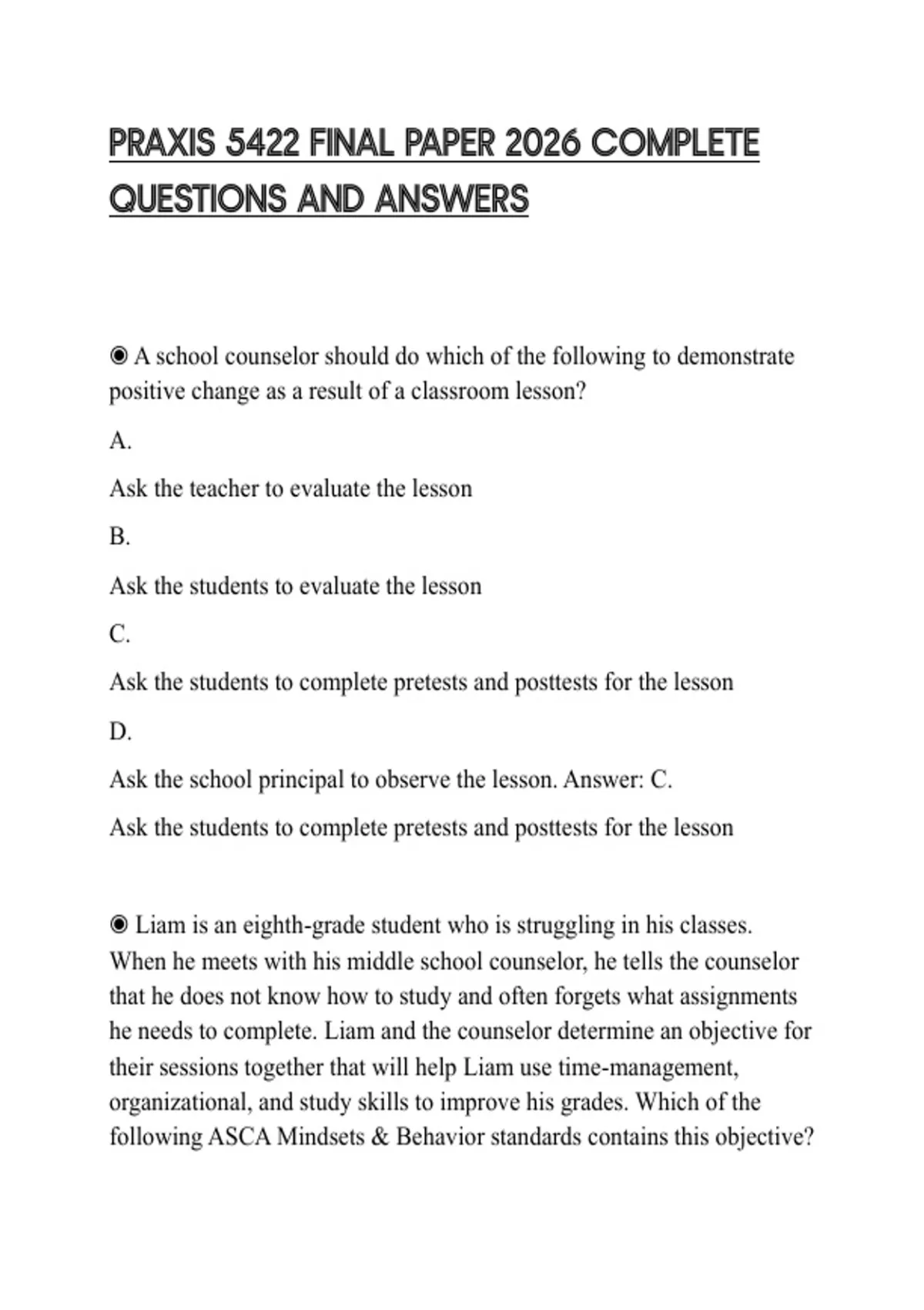PRAXIS 5422 FINAL PAPER 2026 COMPLETE