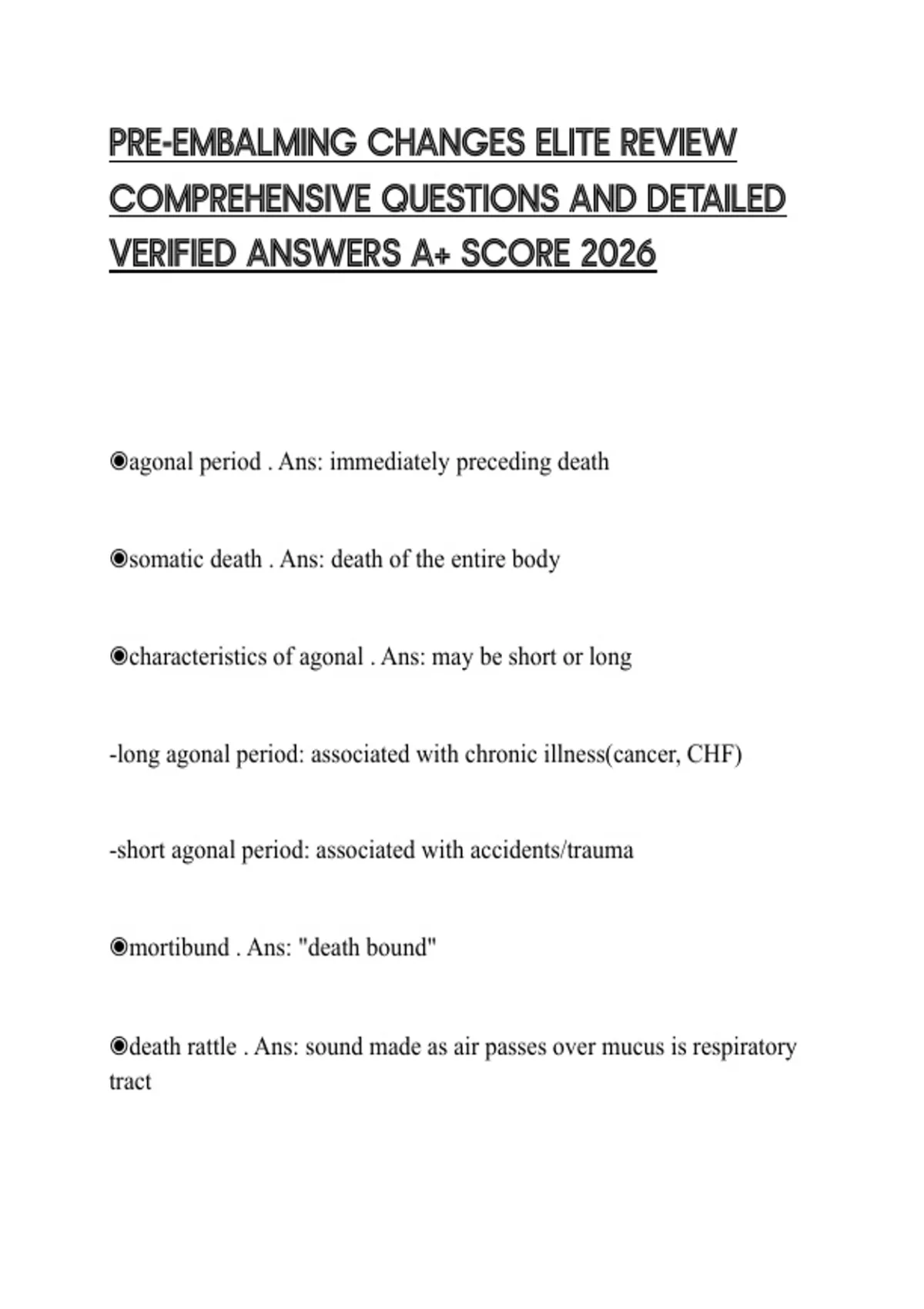 ◉agonal period . Ans: immediately preceding death