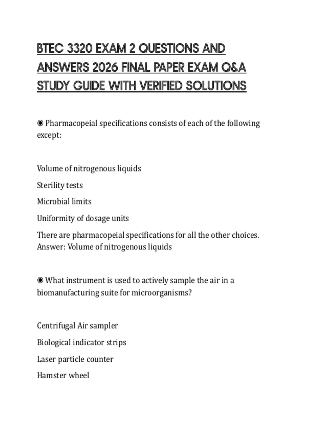 BTEC 3320 EXAM 2 QUESTIONS AND ANSWERS 2026 FINAL PAPER EXAM Q&A STUDY GUIDE WITH VERIFIED SOLUTIONS