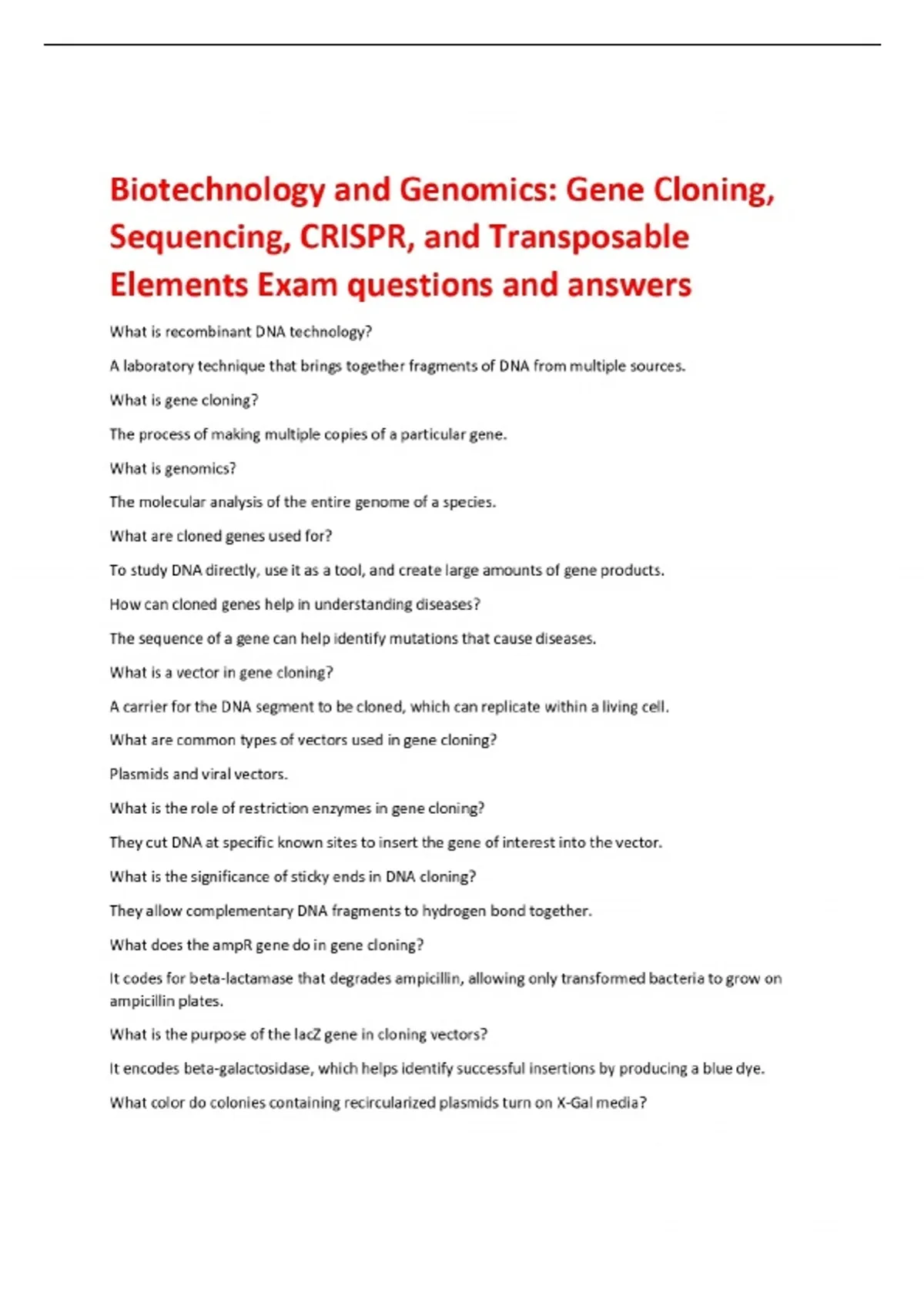 Sequencing, CRISPR, and Transposable Elements Exam questions and answers