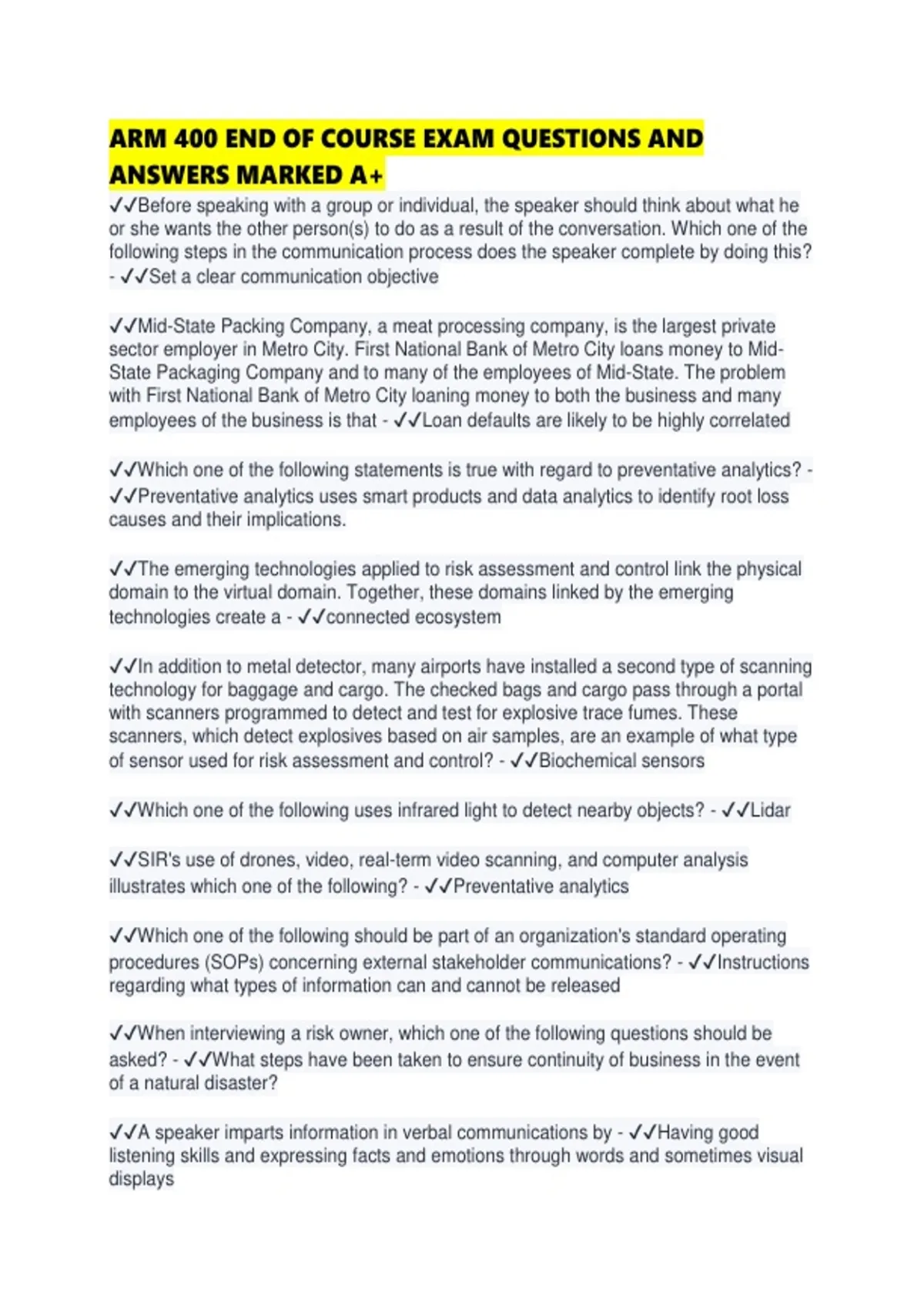 ARM 400 END OF COURSE EXAM QUESTIONS AND ANSWERS MARKED A.pdf
