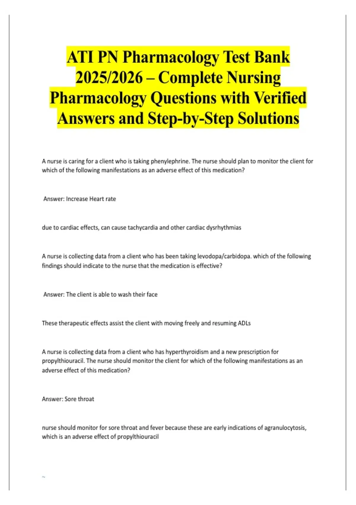 ~ 🗝 __________________________:AT I PN Pharmacology T est Bank, Practical Nur sing Pharmacology Exam Que stions, V erified Nursing Que stions, St ep-by-St ep Pharm acology Answ ers, PN Exam Prep 2025/ 2026, Nursing Study Guide with Solution, Medication Calculation a nd Safety Te st Bank, Comprehen sive ATI PN Pharm acology Resource !!!!!!!!!!!!!!!!!!!!!!!!!!!!!!!