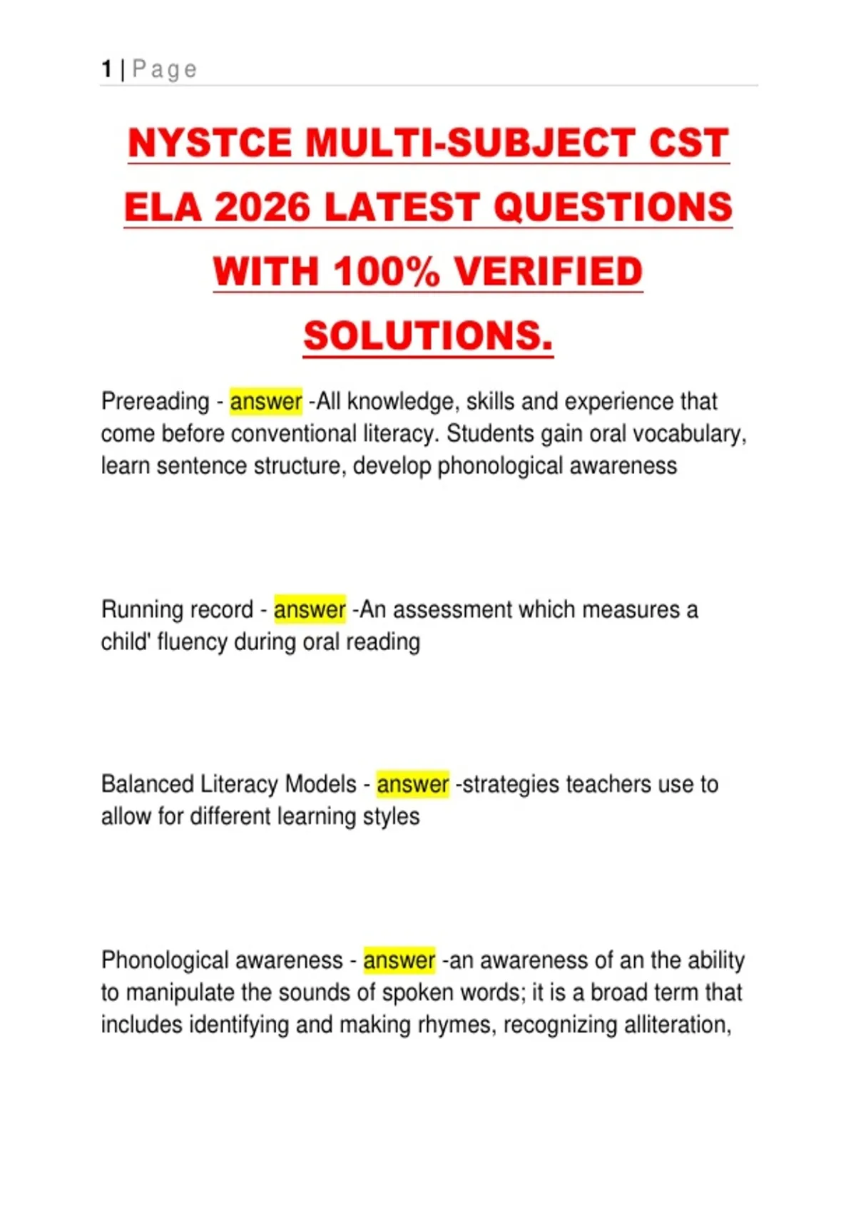 NYSTCE MULTI-SUBJECT CST ELA 2026 LATEST QUESTIONS WITH 100% VERIFIED SOLUTIONS.