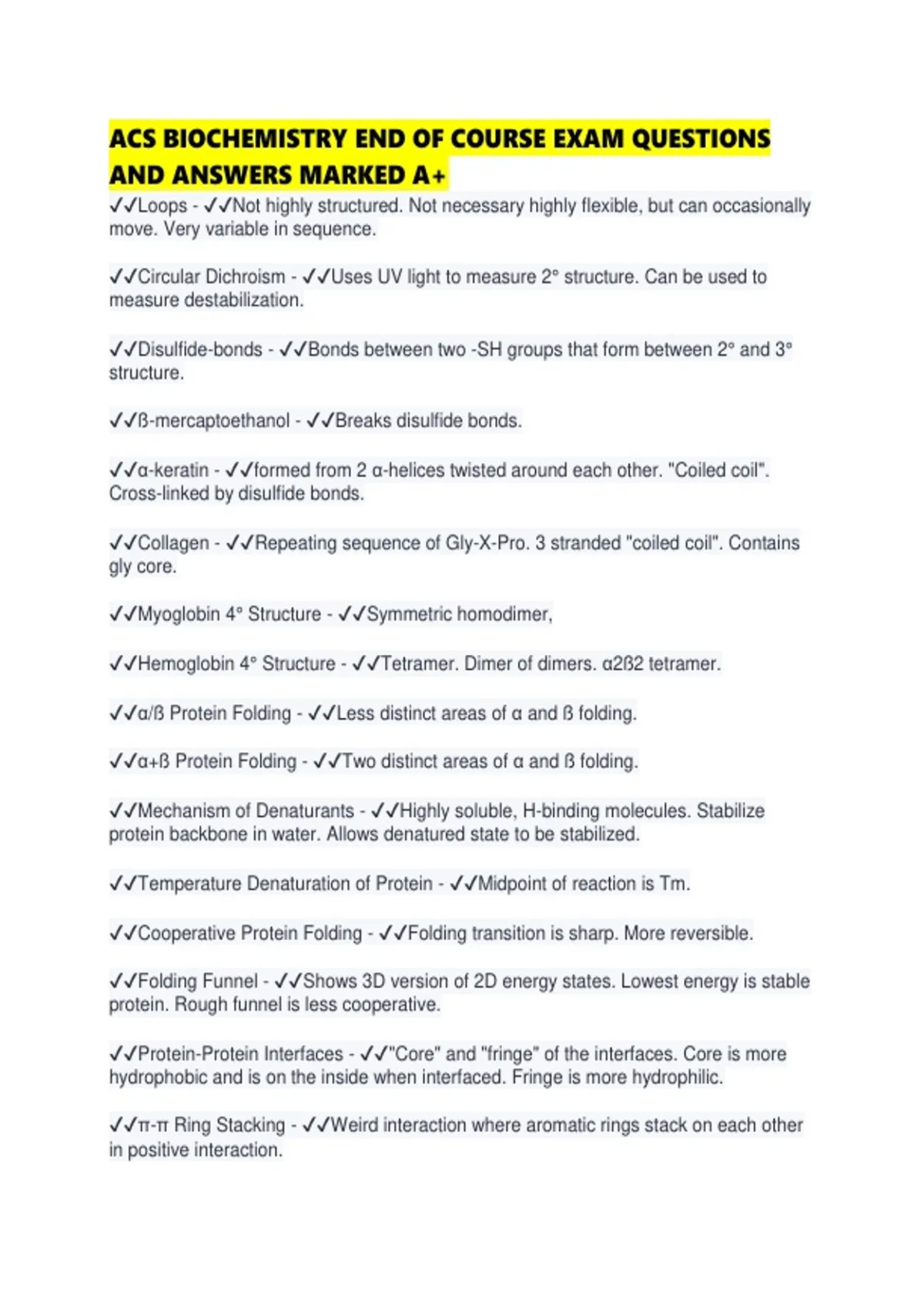 ACS BIOCHEMISTRY END OF COURSE EXAM QUESTIONS AND ANSWERS