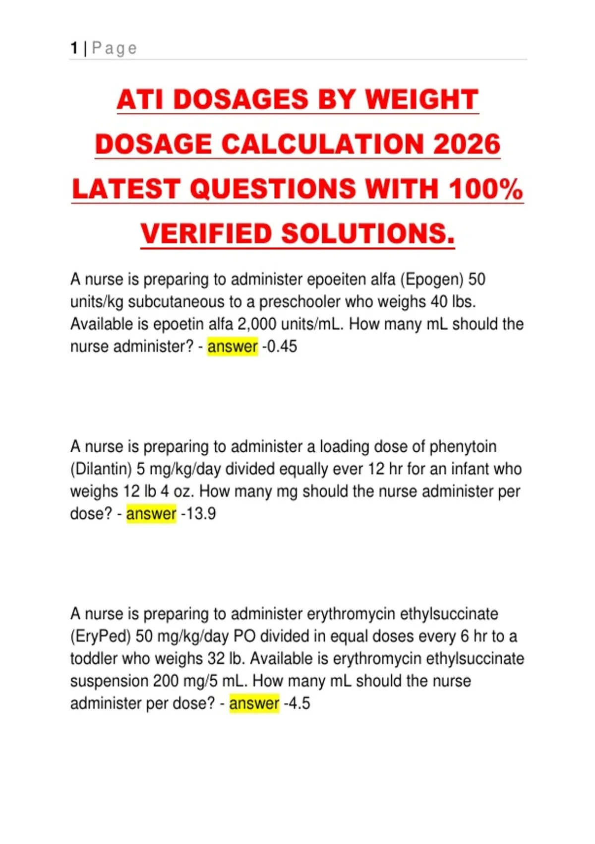 DOSAGE CALCULATION 2026