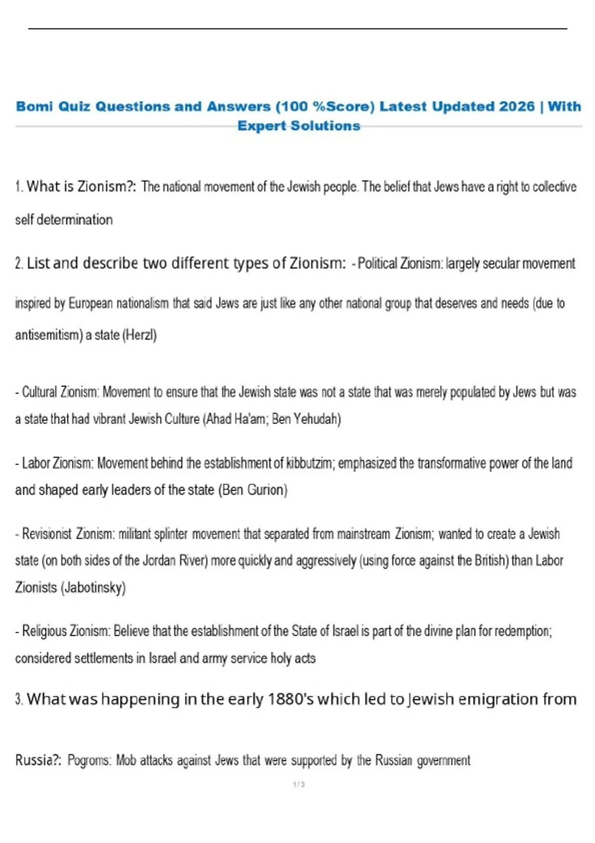Bomi Quiz Questions and Answers (100 %Score) Latest Updated 2026 | With Expert Solutions