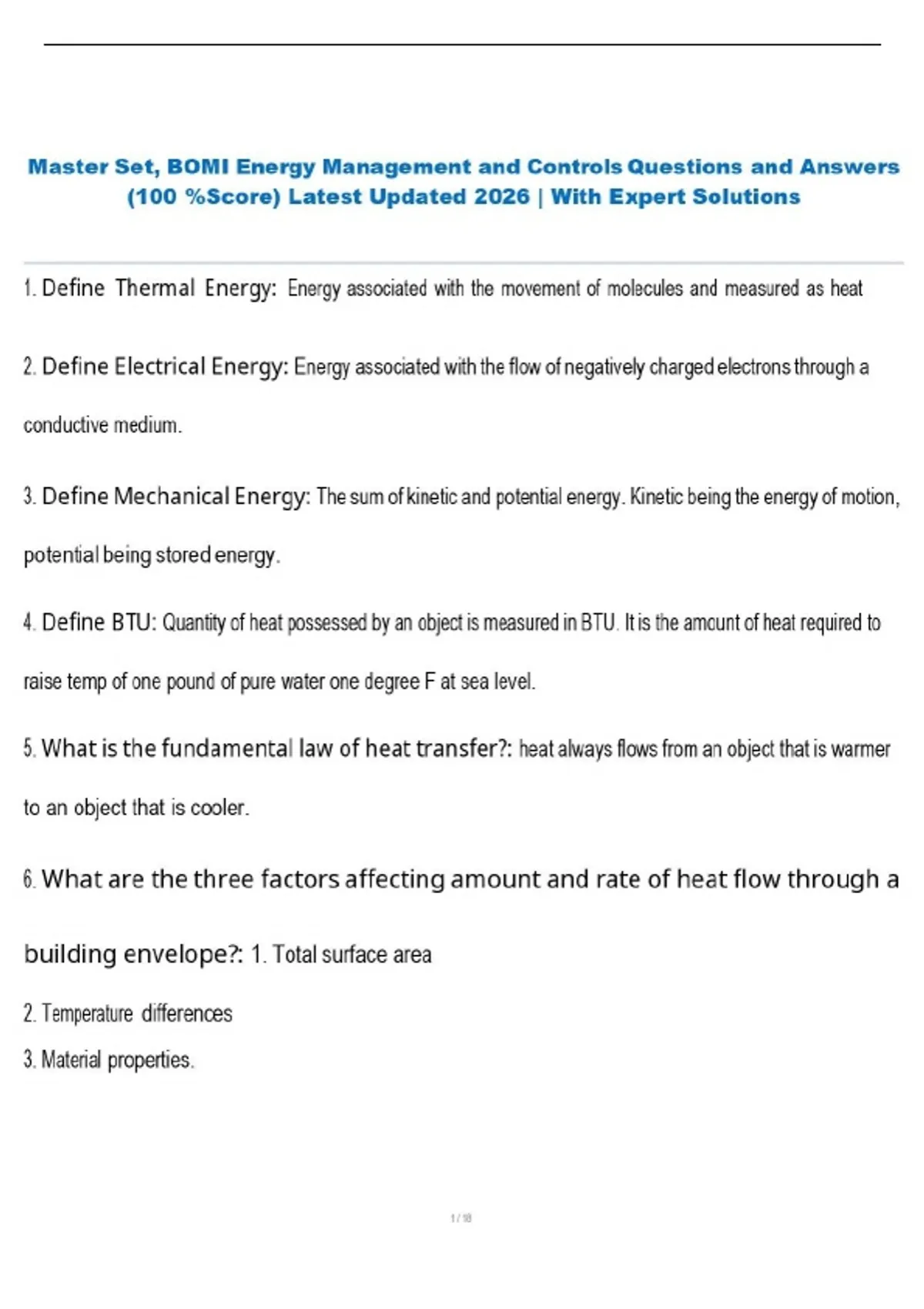 Master Set, BOMI Energy Management and Controls Questions and Answers (100 %Score) Latest Updated 2026 | With Expert Solutions