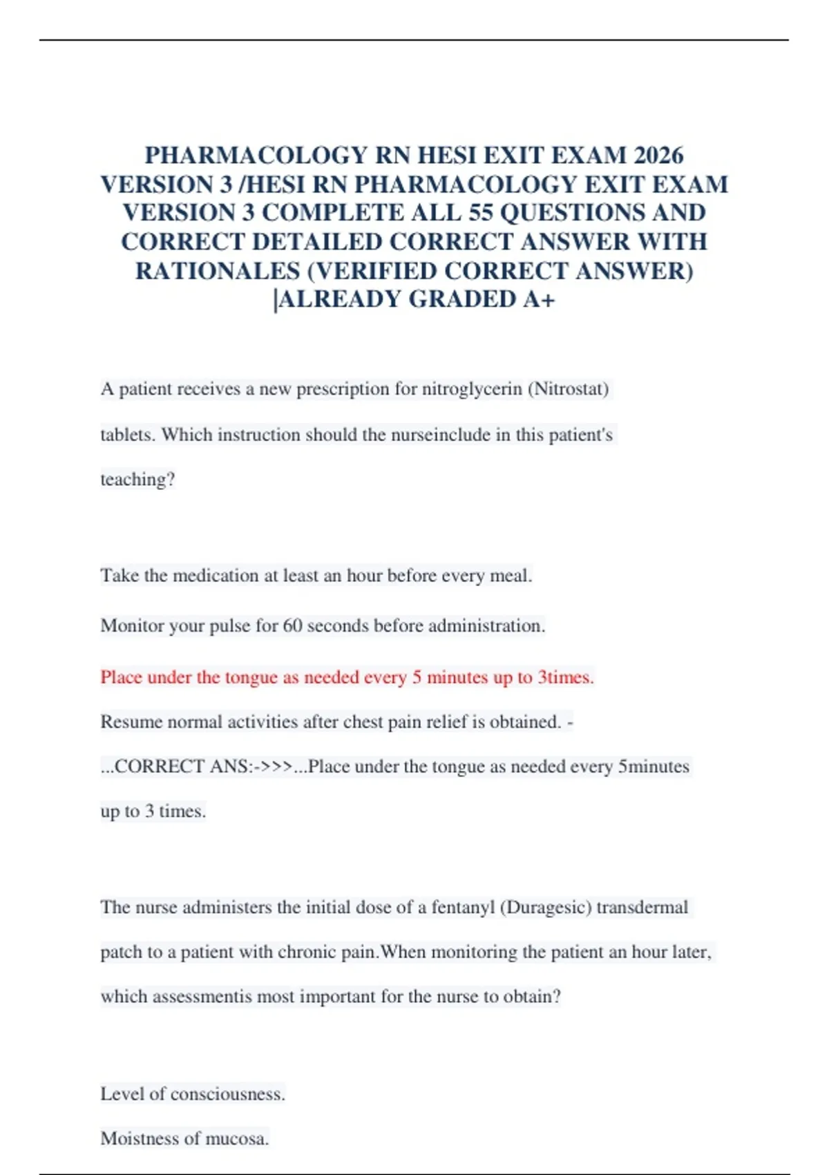 VERSION 3 /HESI RN PHARMACOLOGY EXIT EXAM