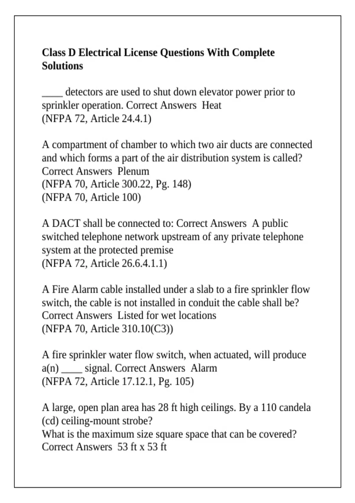 Class D Electrical License Questions With Complete Solutions