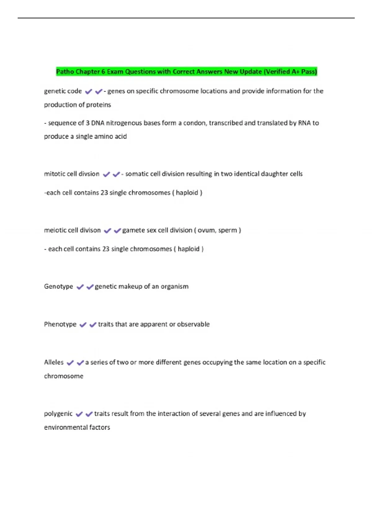 Patho Chapter 6 Exam Questions with Correct Answers New Update (Verified A+ Pass)
