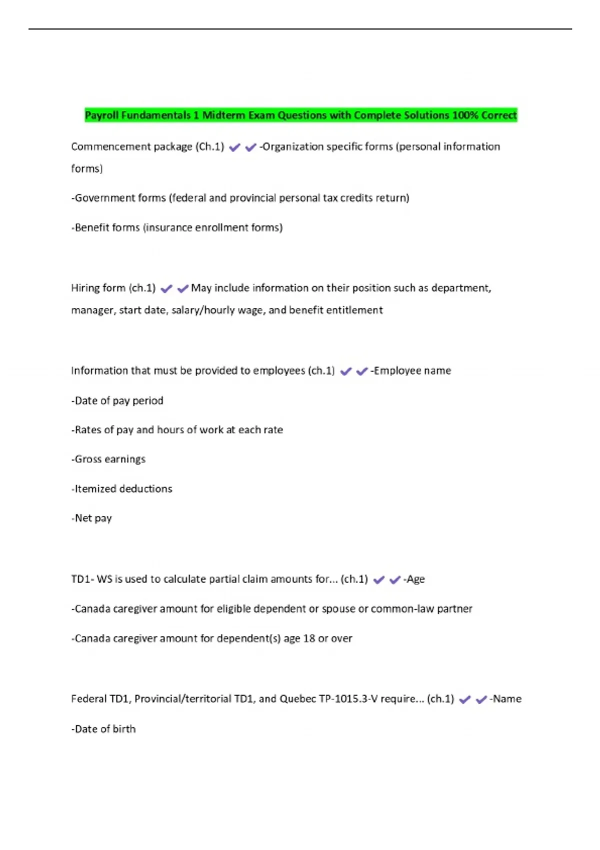 Payroll Fundamentals 1 Midterm Exam Questions with Complete Solutions 100% Correct