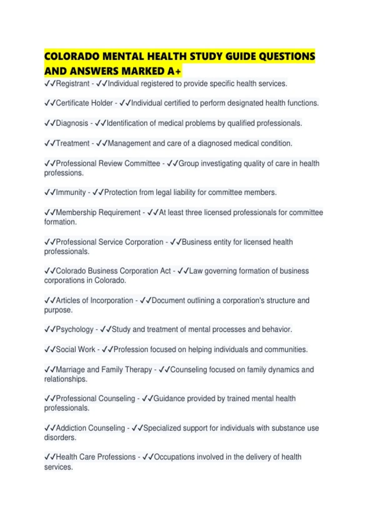 COLORADO MENTAL HEALTH STUDY GUIDE QUESTIONS AND ANSWERS MARKED A.pdf