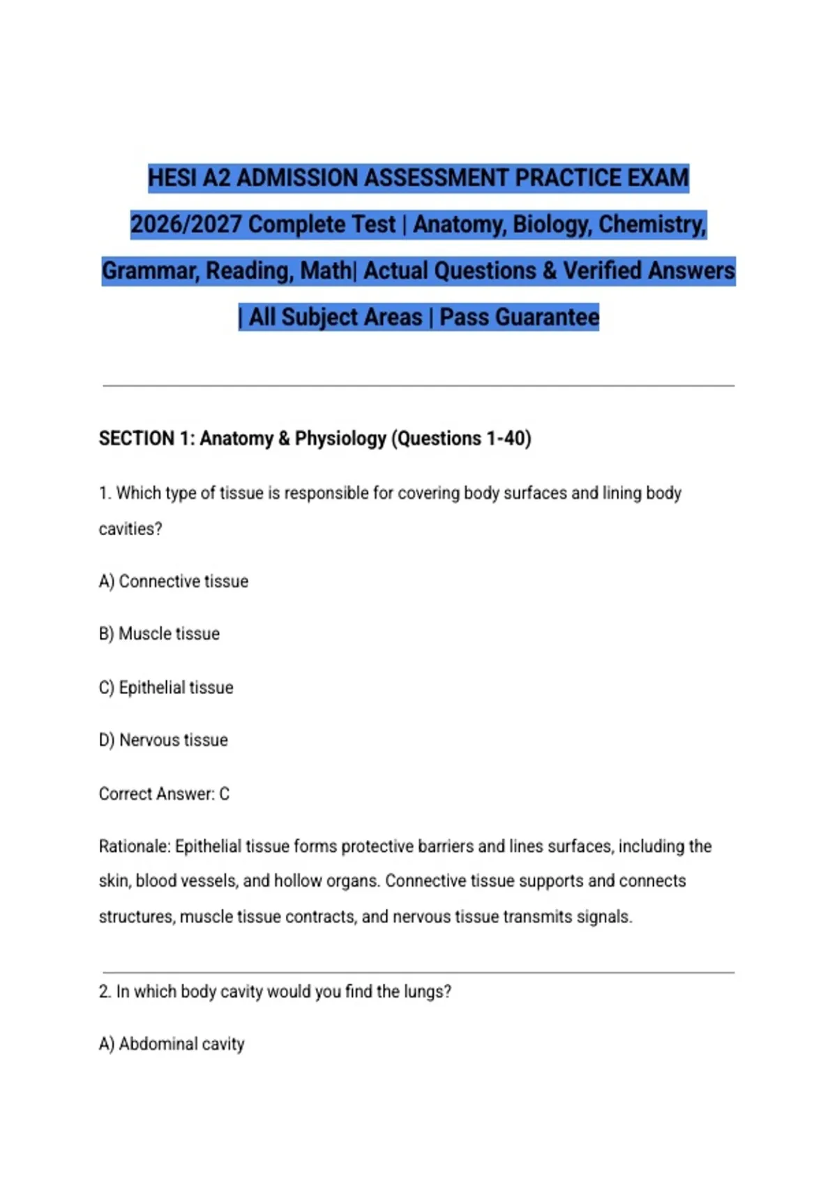 2026/2027 Complete Test | Anatomy, Biology, Chemistry,