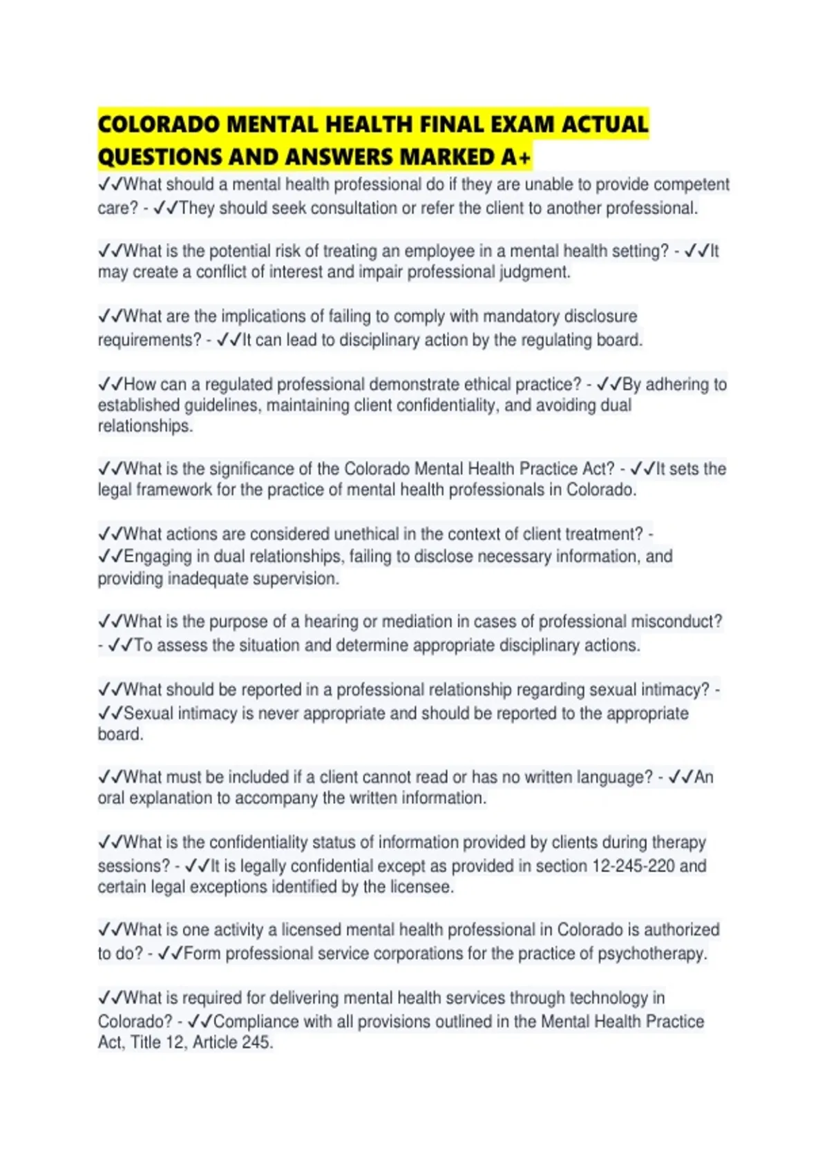 COLORADO MENTAL HEALTH FINAL EXAM ACTUAL QUESTIONS AND ANSWERS MARKED A.pdf