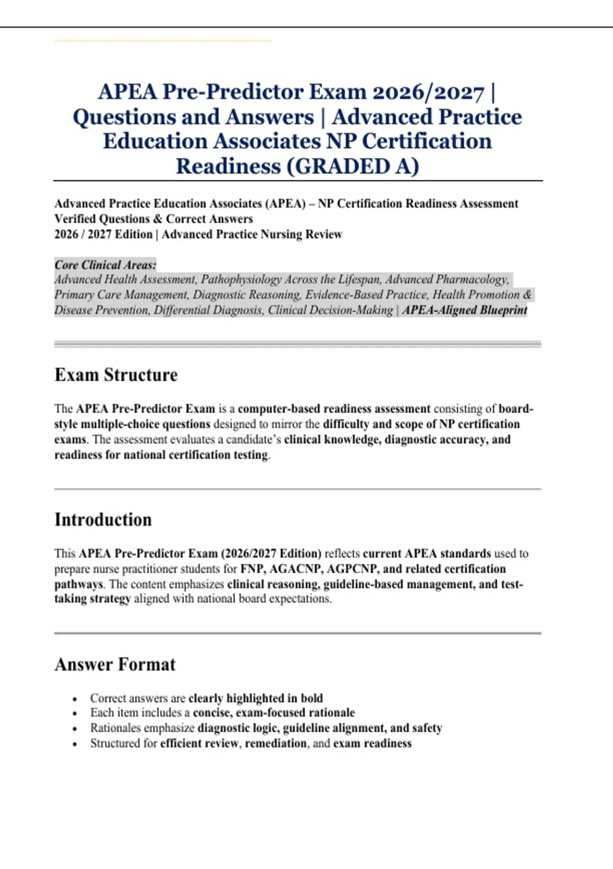 This APEA Pre-Predictor Exam (2026/2027 Edition) reflects current APEA standards used to