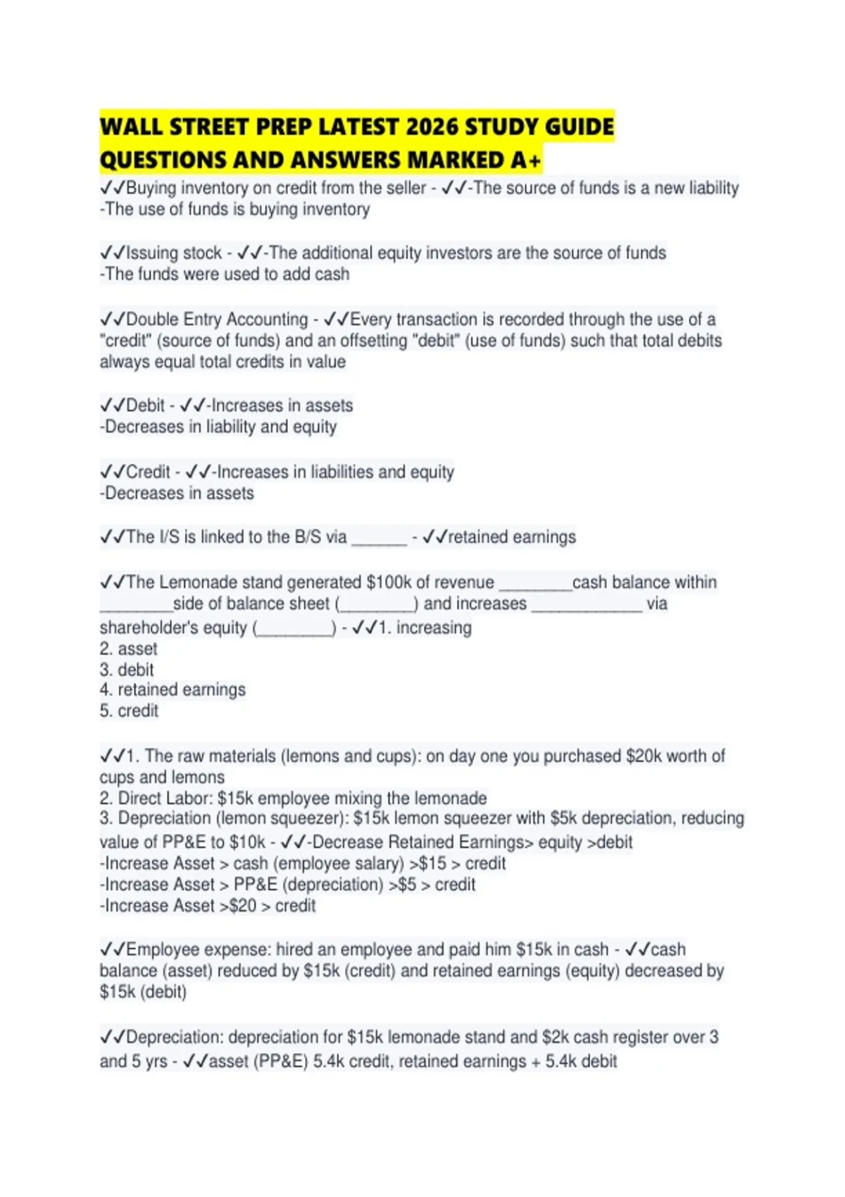 WALL STREET PREP LATEST 2026 STUDY GUIDE QUESTIONS AND ANSWERS MARKED