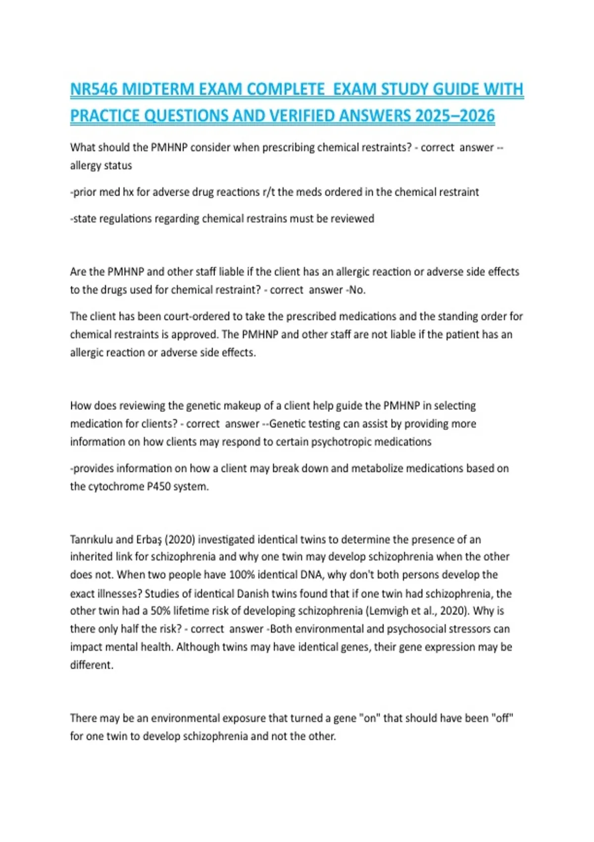 NR546 MIDTERM EXAM COMPLETE EXAM STUDY GUIDE WITH PRACTICE QUESTIONS AND VERIFIED ANSWERS 2025–2026