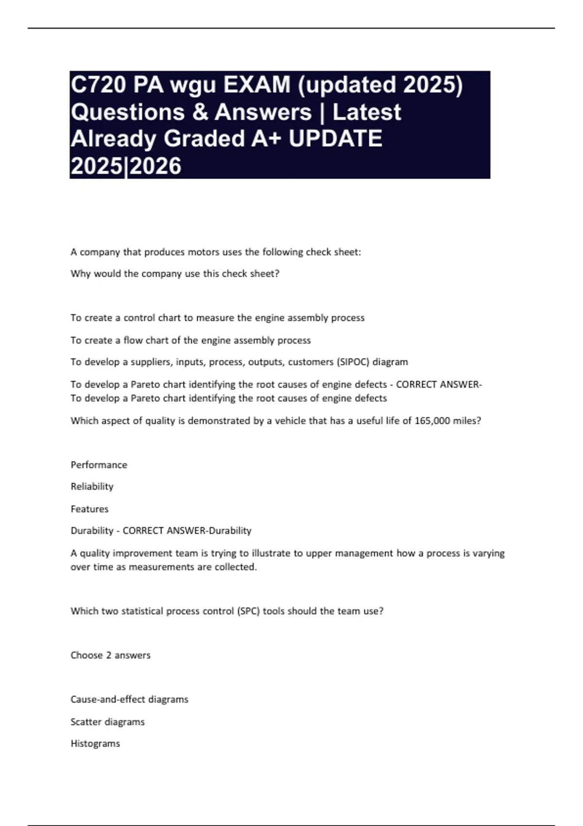 C720 PA wgu EXAM (updated 2025) Questions & Answers | Latest Already Graded A+ UPDATE 2025|2026
