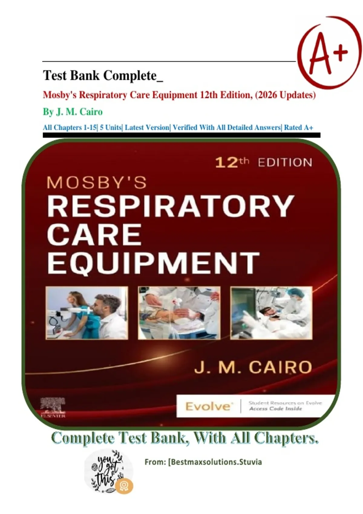 J. M. Cairo: Mosby's Respiratory Care Equipment 12th Edition, Test Bank