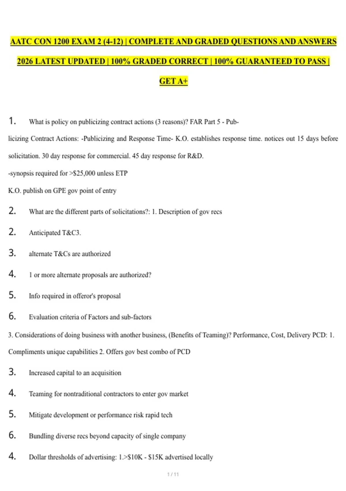 1. What is policy on publicizing contract actions (3 reasons)? FAR Part 5 - Pub-