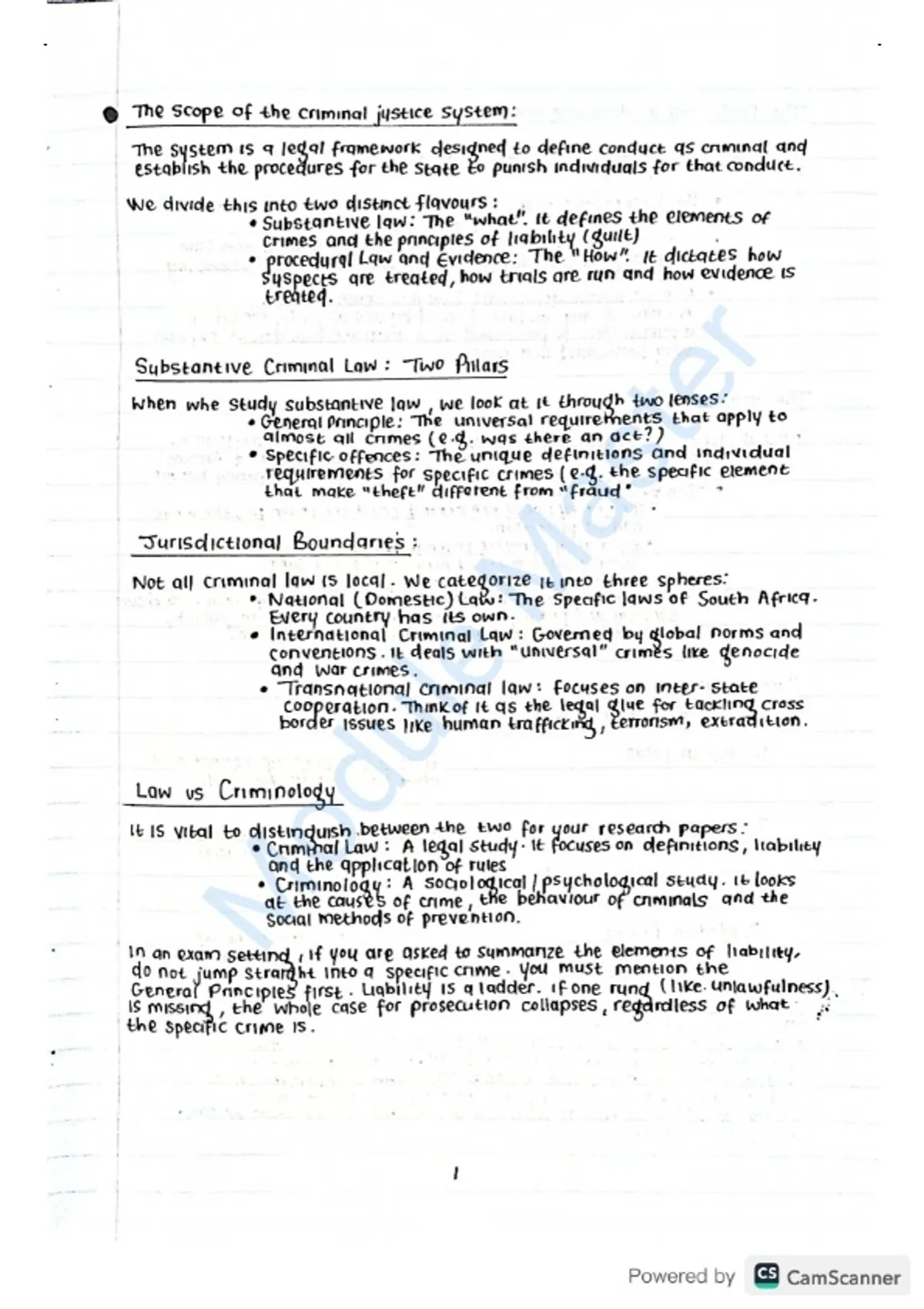 ⚖️ CRW1501: The Ultimate "Distinction" Exam Pack (Part 1) ⚖️ Are you drowning in Snyman’s textbook? Confused by the "Purification Movement"? Worried that your "Ladder of Liability" is missing a few rungs? Stop stressing and start studying smart. These aren't just notes; they are a high-level synthesis of everything you need to crush Part 1 of Criminal Law at UNISA. Why this pack is a best-seller? * 33 Pages of Pure Gold: Covers everything from the historical Roman-Dutch origins to modern Constitutional impacts. * The "Ladder of Liability" Framework: Learn why you should never jump straight into a specific crime in an exam without hitting the General Principles first. * Aesthetic & Legible: Beautifully handwritten with bold headings, tables, and clear bullet points. It’s easier on the eyes than a 500-page PDF. * UNISA-Specific Exam Hacks: I’ve flagged the "Layperson’s Traps" and "Common Exam Mistakes" that trip up thousands of students every semester. What’s Inside? * The Big Picture: Distinguishing Substantive Law from Procedural Law. * The Origins: How the fusion of Roman Law and Germanic custom shaped our hybrid system. * Constitutional Era: Essential case law summaries, including S v Makwanyane and National Coalition for Gay and Lesbian Equality. * Mala in se vs. Mala prohibita: A definitive guide to inherently "evil" crimes vs. statutory "prohibited" acts. "If you are looking for the 'legal glue' to hold your exam answers together, this is it! These notes translate complex legal jargon into plain English without losing the academic depth required for an LLB." Price: R149.00 (Cheaper than a supplementary exam!) Download now and secure your distinction today!