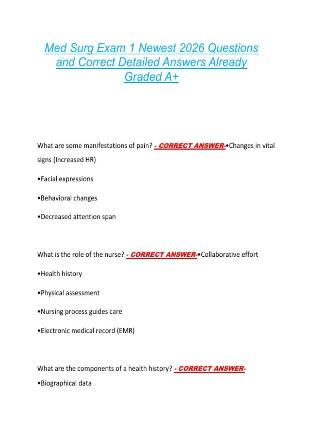 Med Surg Exam 1 Newest 2026 Questions and Correct Detailed Answers Already Graded A+