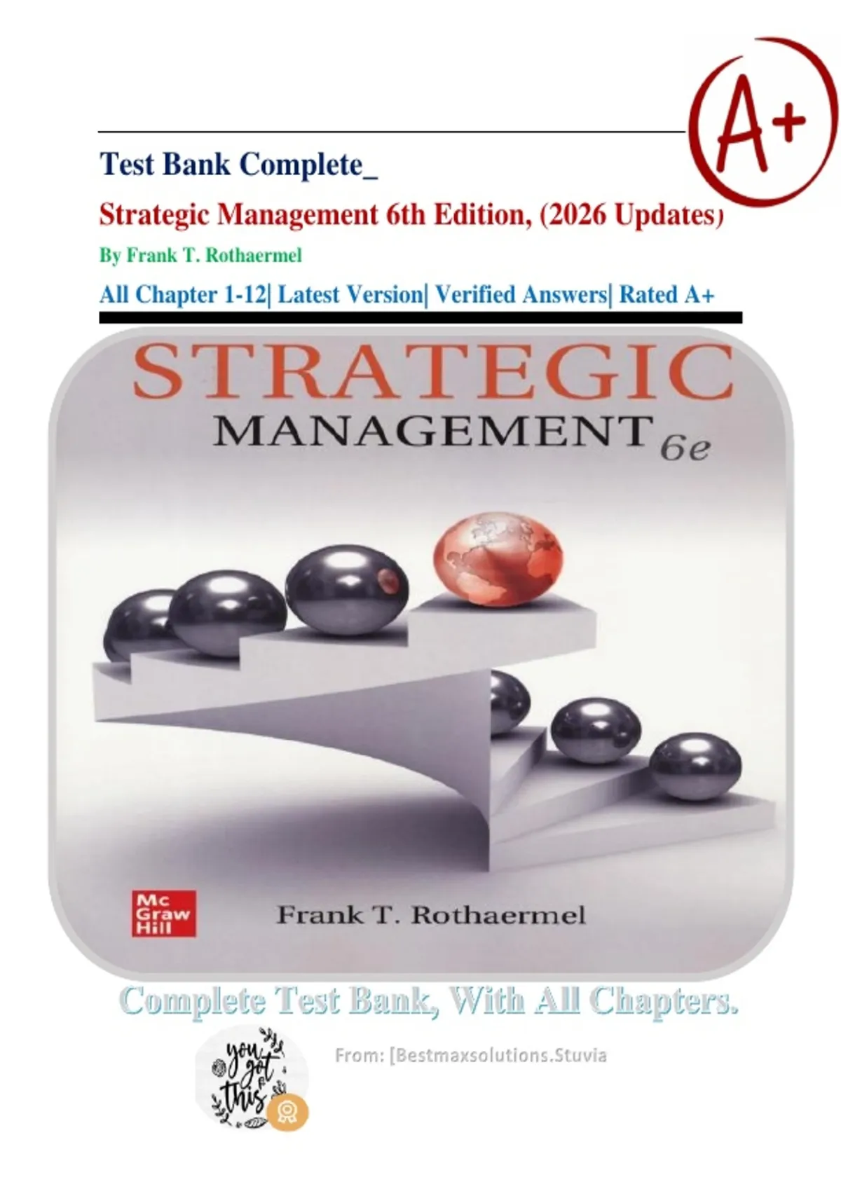 Test Bank Complete_ Strategic Management 6th Edition, (2026 Updates) By Frank T. Rothaermel| All Chapter 1-12| Latest Version| Verified Answers| Rated A+
