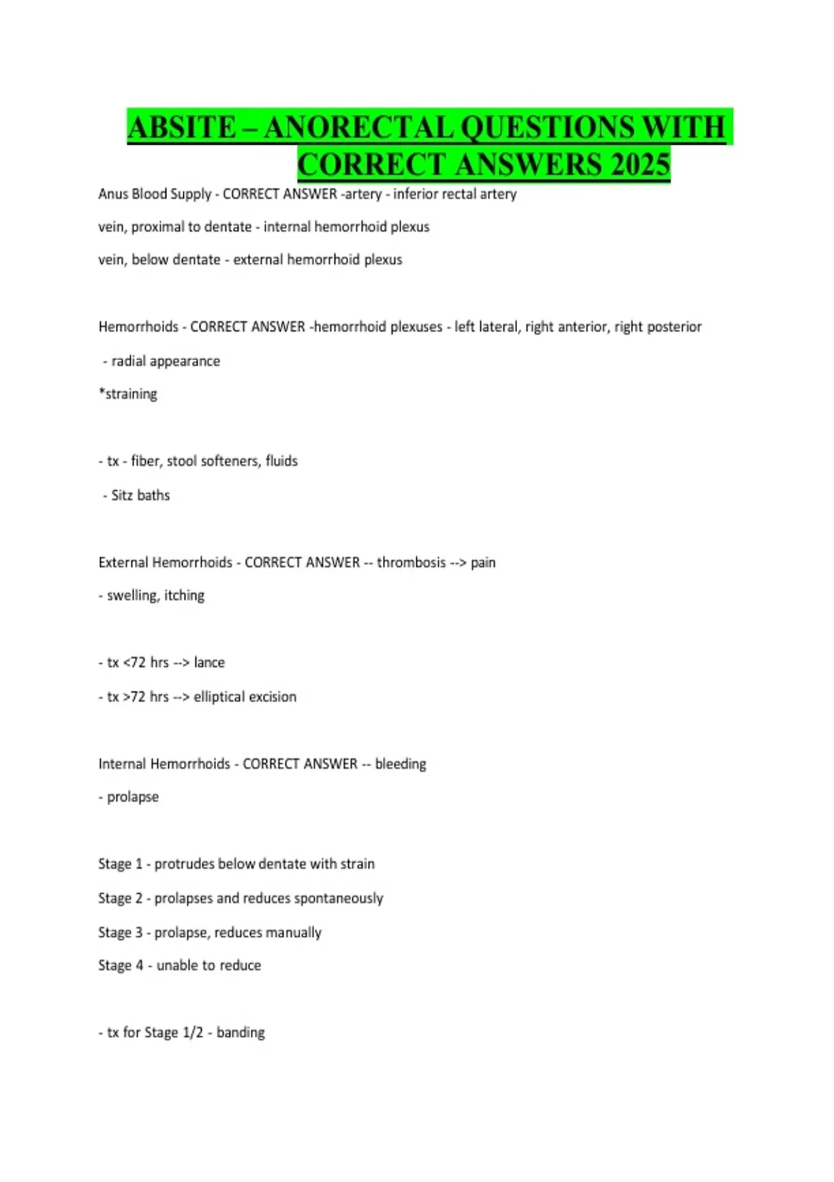 ABSITE – ANORECTAL QUESTIONS WITH CORRECT ANSWERS 2025/2026