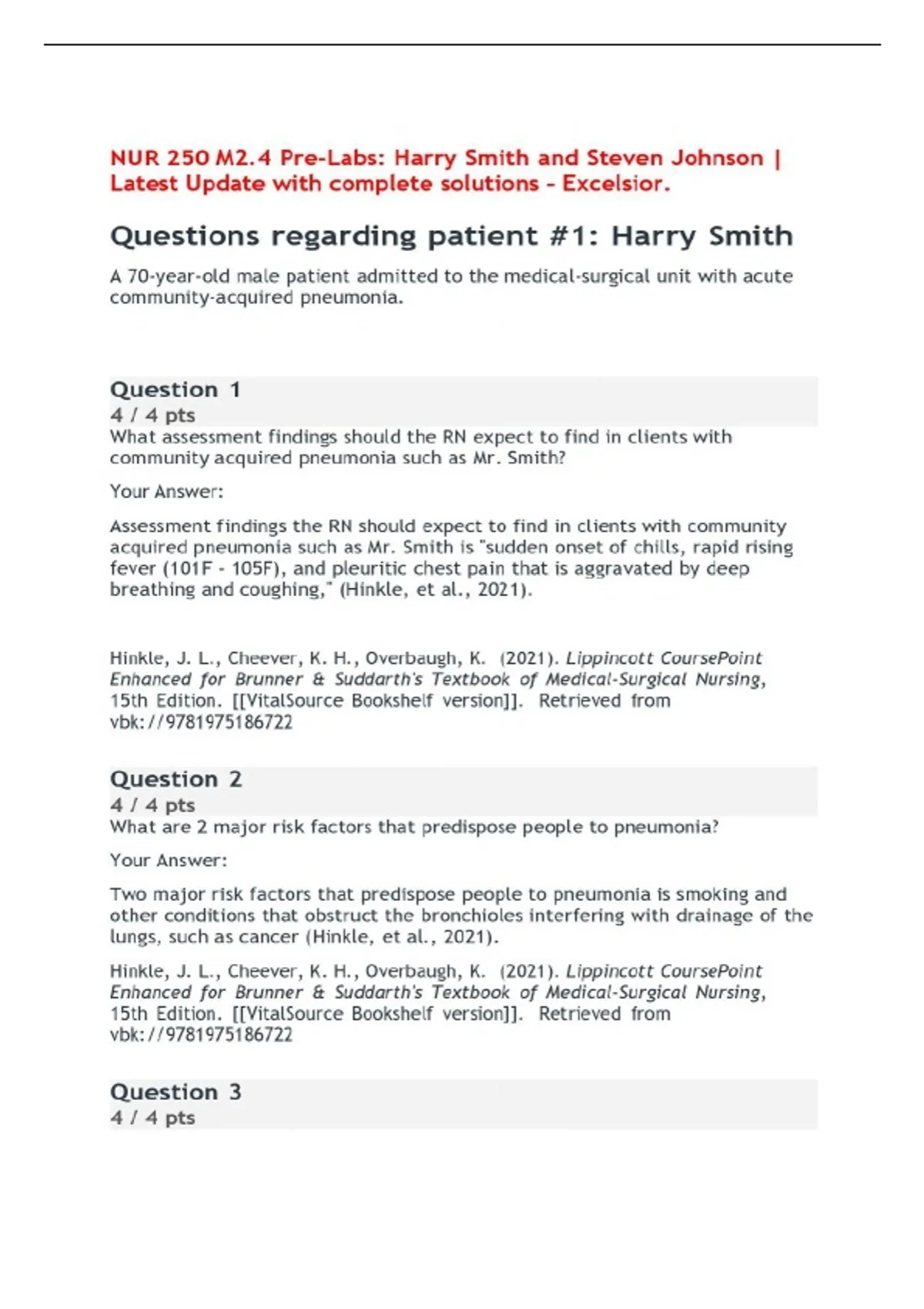 NUR 250 M2.4 Pre-Labs: Harry Smith and Steven Johnson | Latest Update with complete solutions – Excelsior.