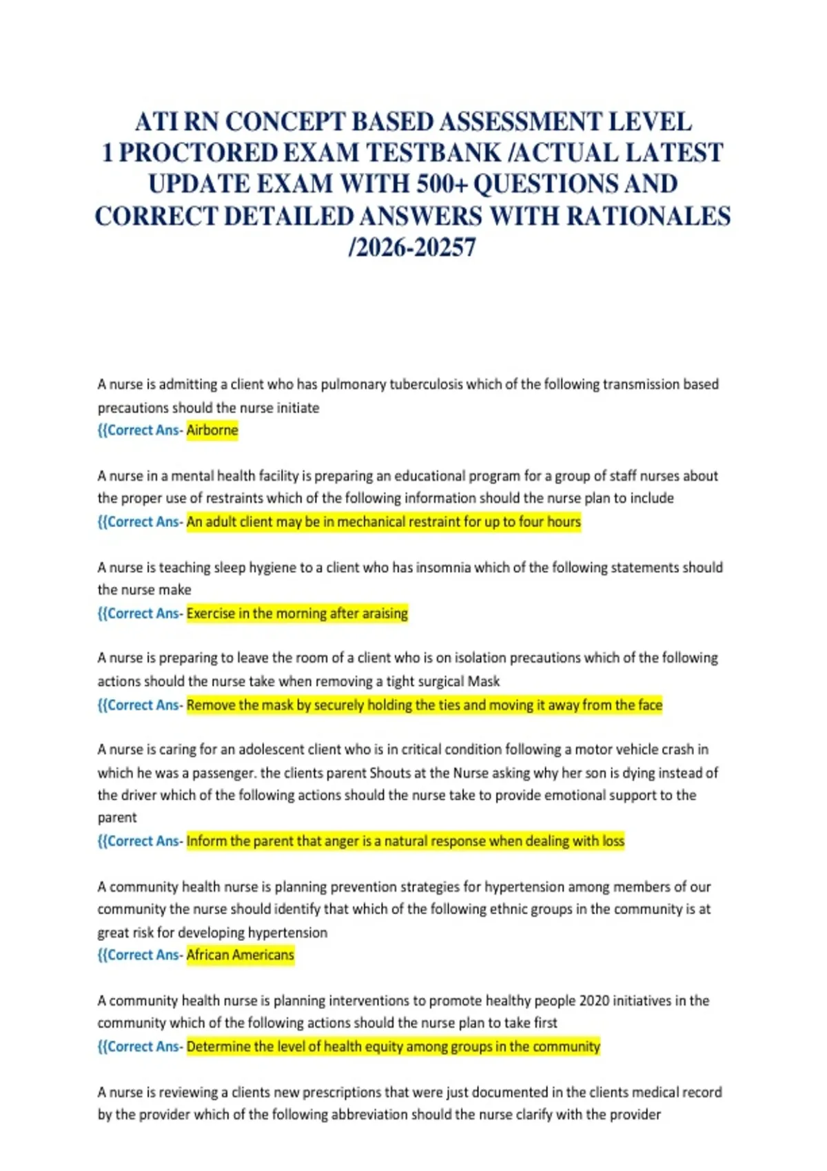 1 PROCTORED EXAM TESTBANK /ACTUAL LATEST