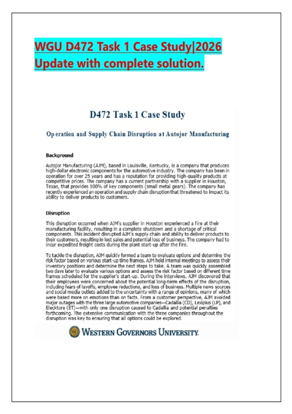 WGU D472 Task 1 Case Study|2026