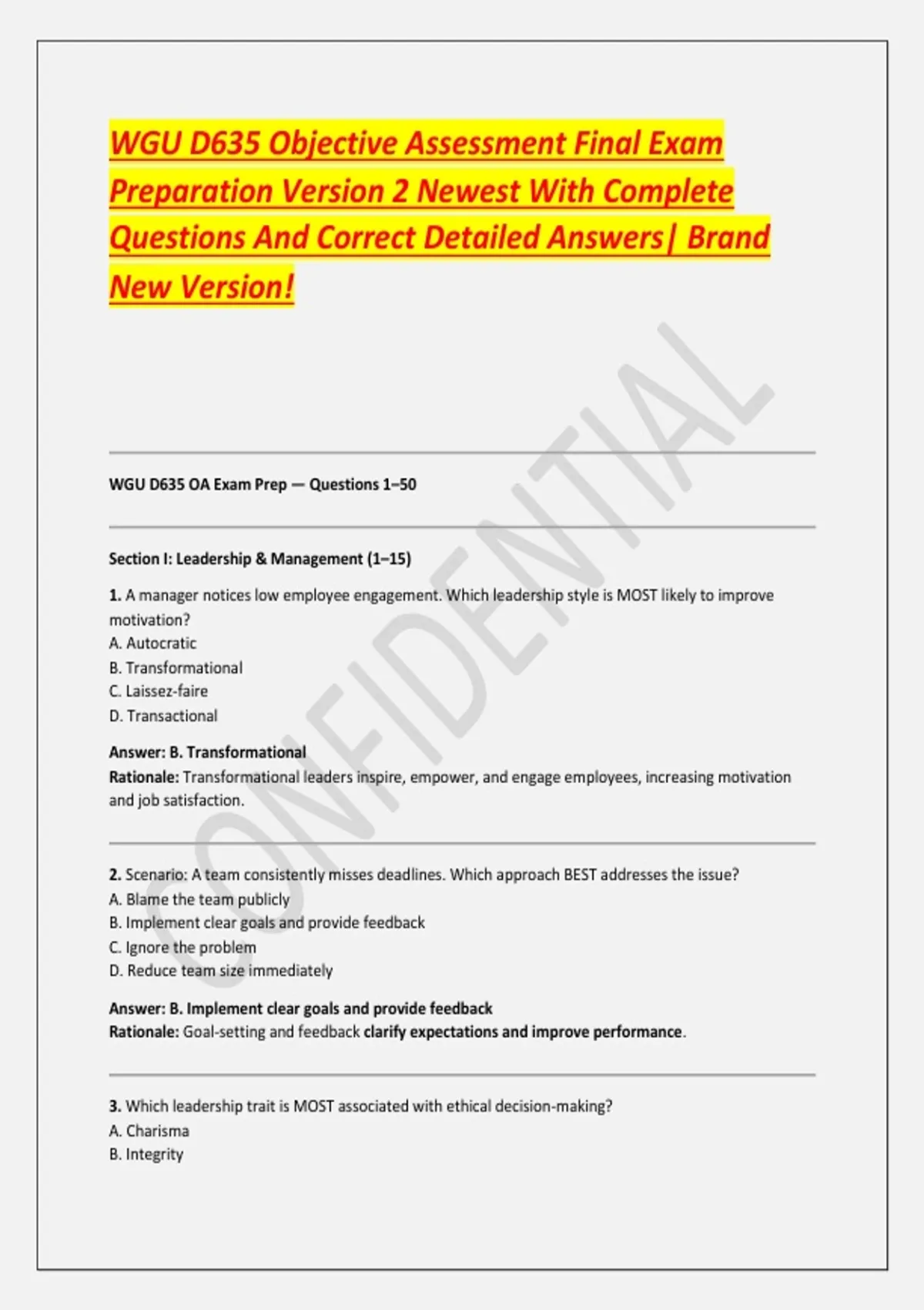 WGU D635 Objective Assessment Final Exam Preparation Version 2 Newest With Complete Questions And Correct Detailed Answers| Brand New Version!