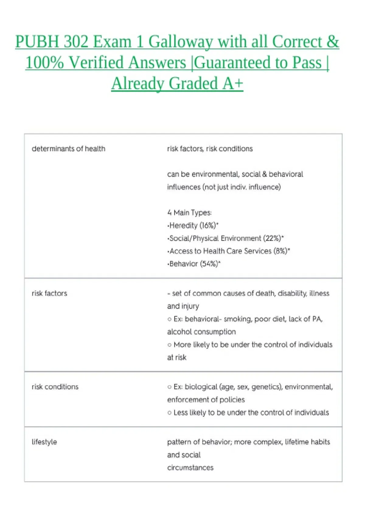 PUBH 302 Exam 1 Galloway with all Correct & 100% Verified Answers |Guaranteed to Pass |Already Graded A+