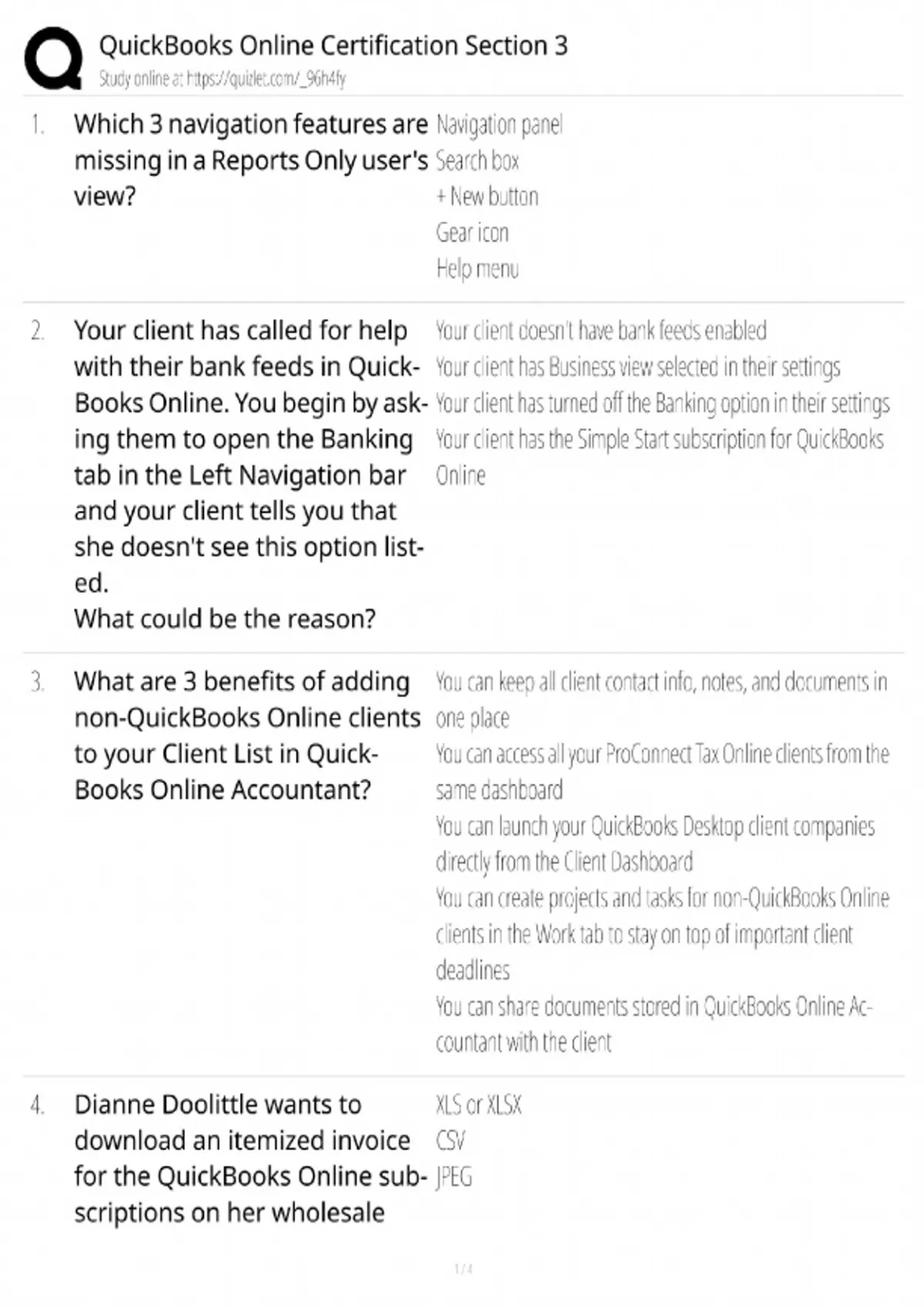 QuickBooks Online Certification Section 3 / score 100% / new version / 2025 update / Study Guide & Exam Prep