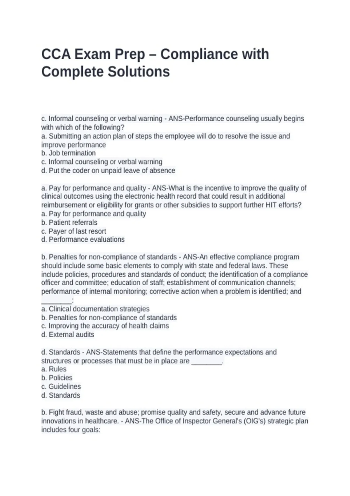 b. Penalties for non-compliance of standards - ANS-An effective compliance program
