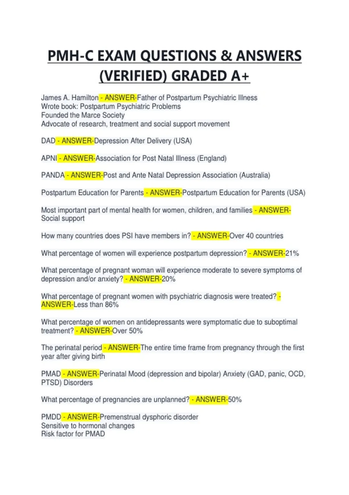 PMH-C EXAM QUESTIONS & ANSWERS (VERIFIED) GRADED A+