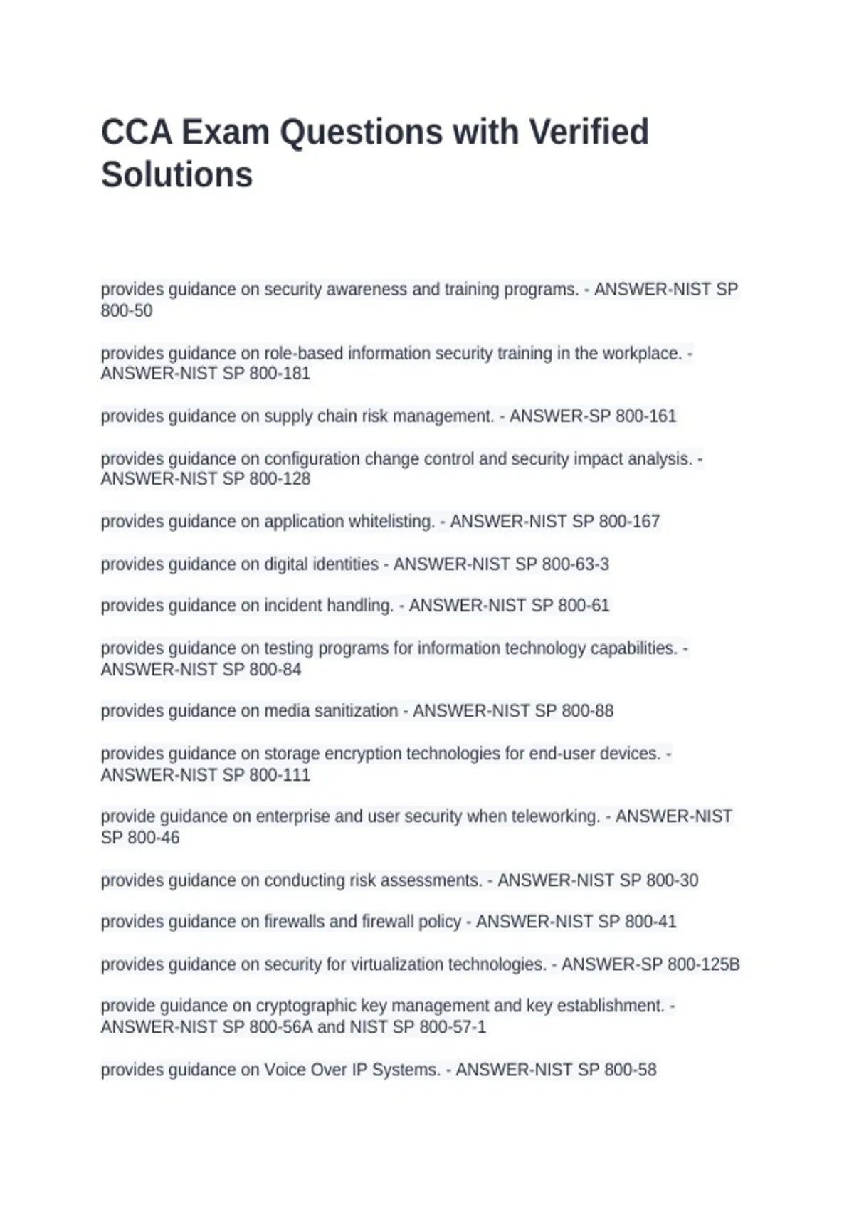 ANSWER-NIST SP 800-84