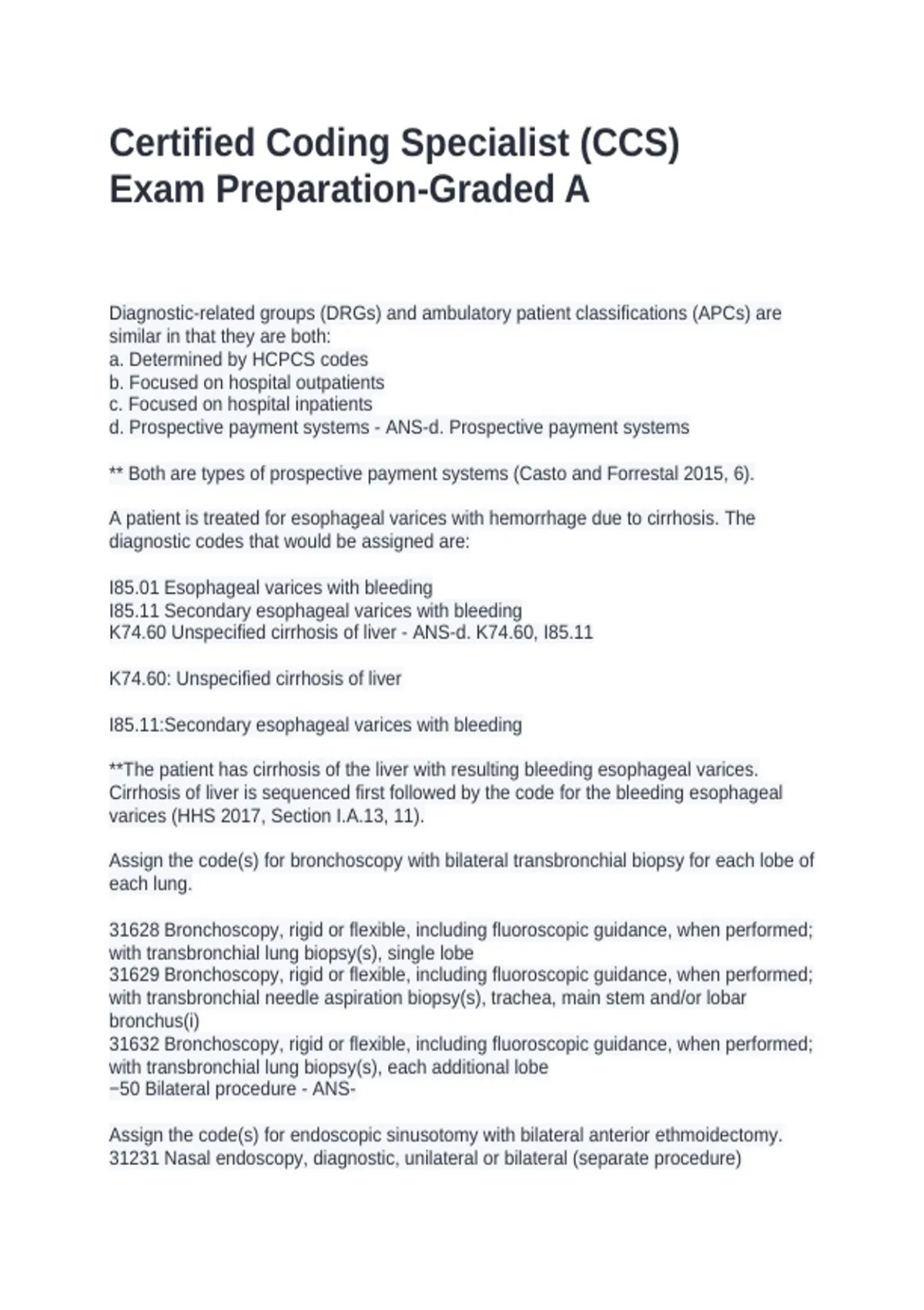 Certified Coding Specialist (CCS) Exam Prep Questions -AHIMA 6th Edition