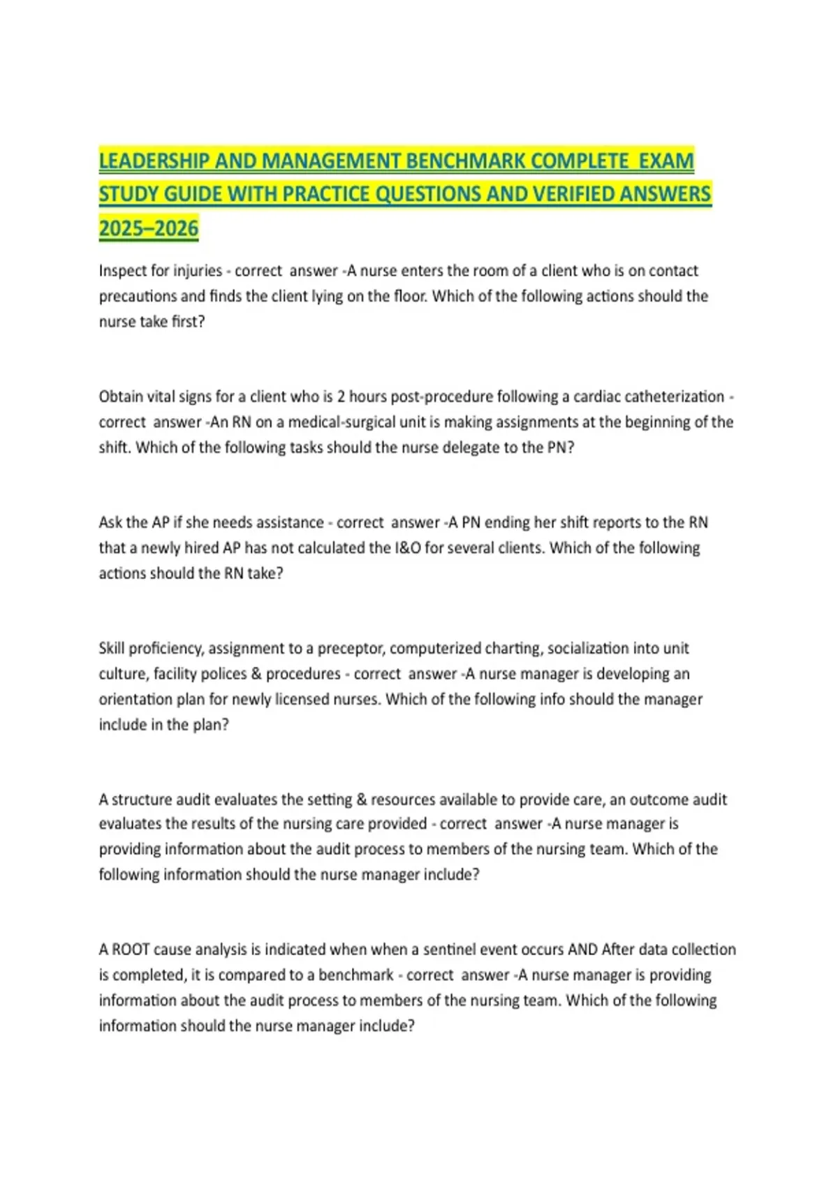 LEADERSHIP AND MANAGEMENT BENCHMARK COMPLETE EXAM