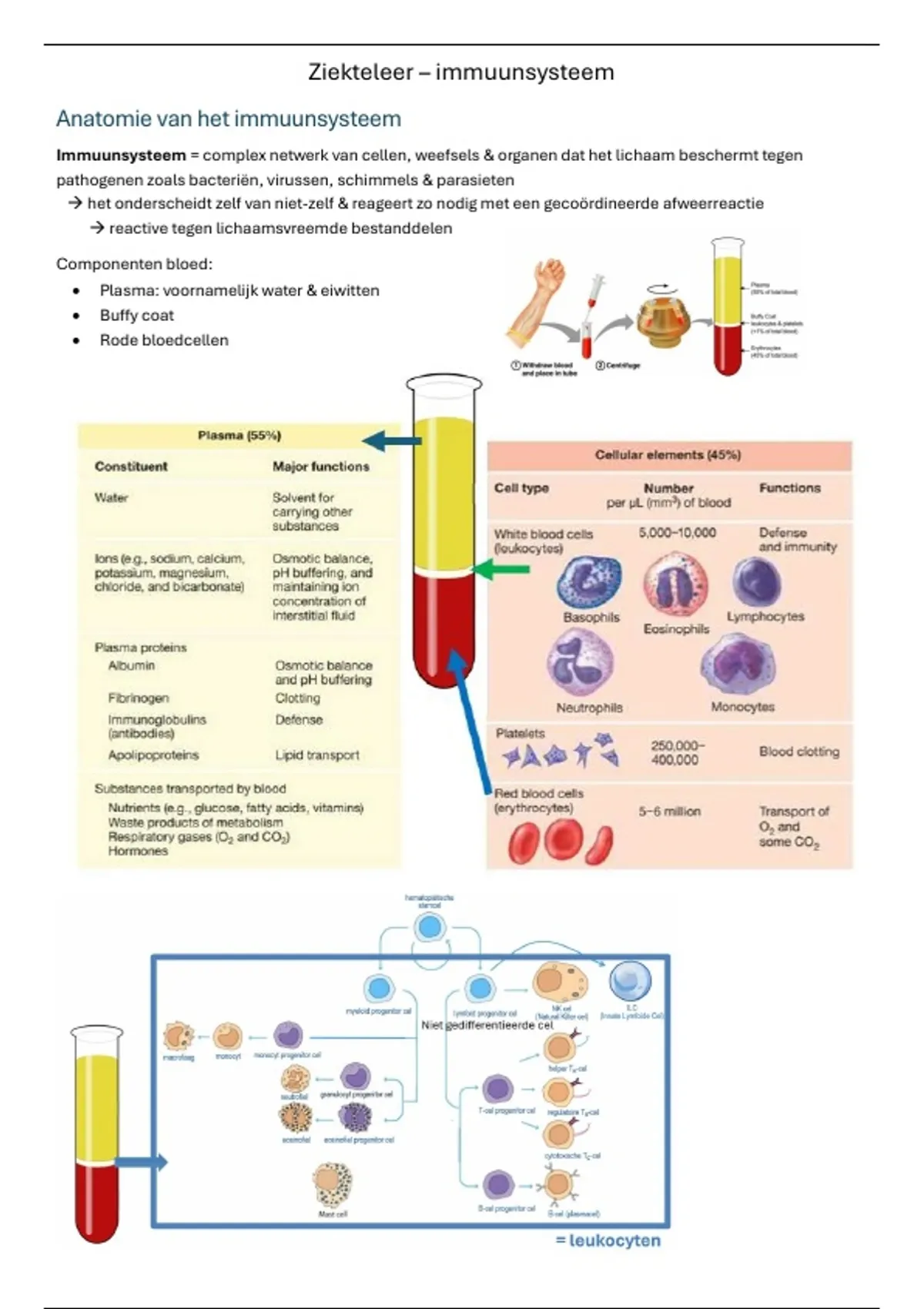 Immuunsysteem = complex netwerk van cellen, weefsels & organen dat het lichaam beschermt tegen