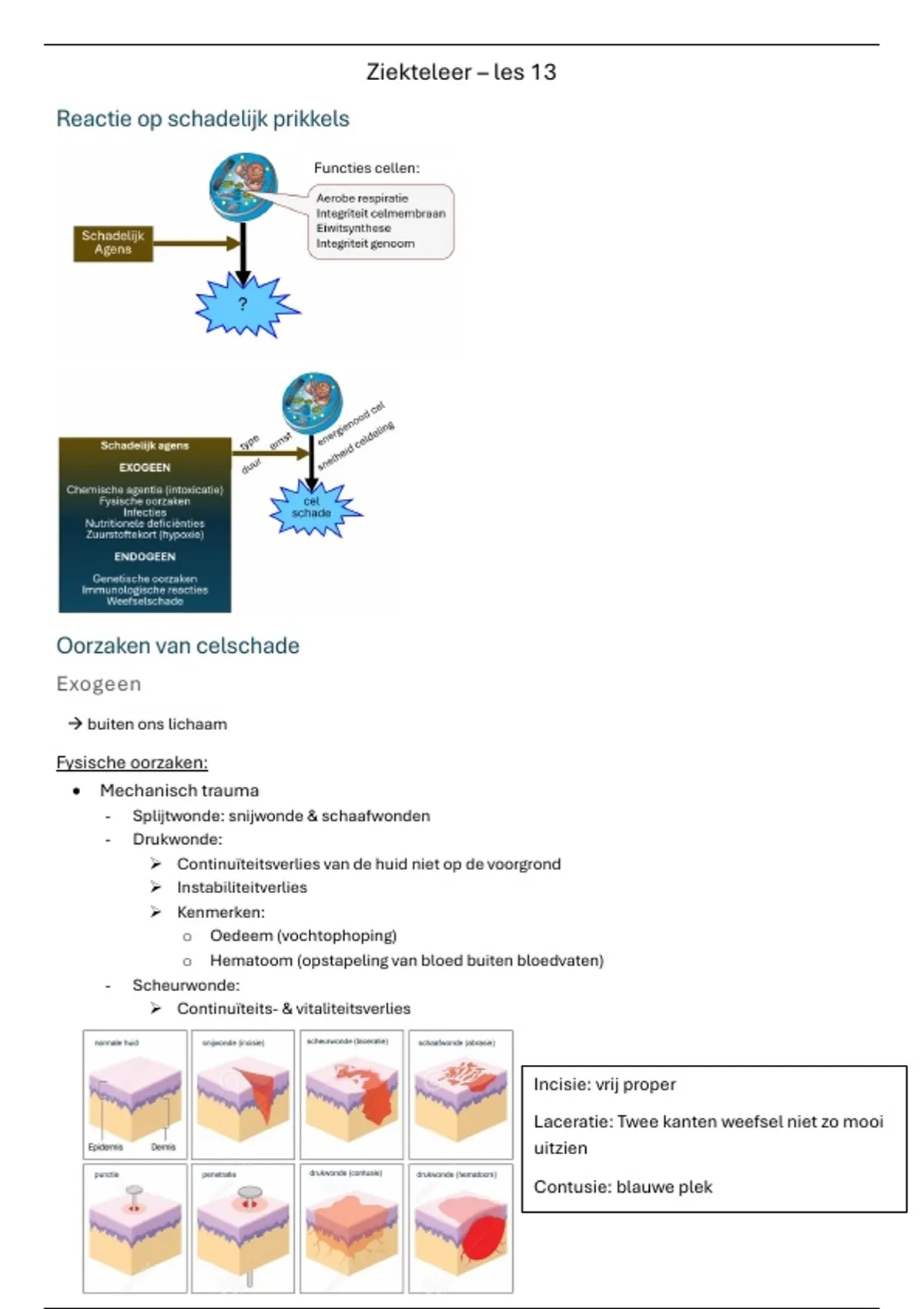 celdood (apoptose of necrose), weefselschade en ziektes.