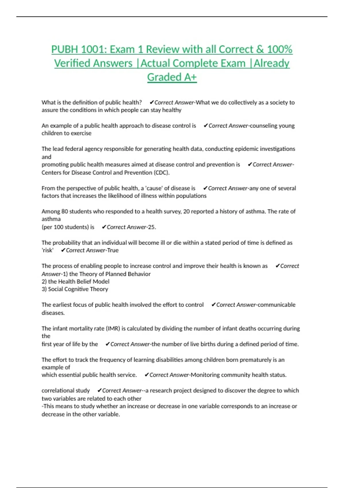 What is the definition of public health? ✔Correct Answer-What we do collectively as a society to
