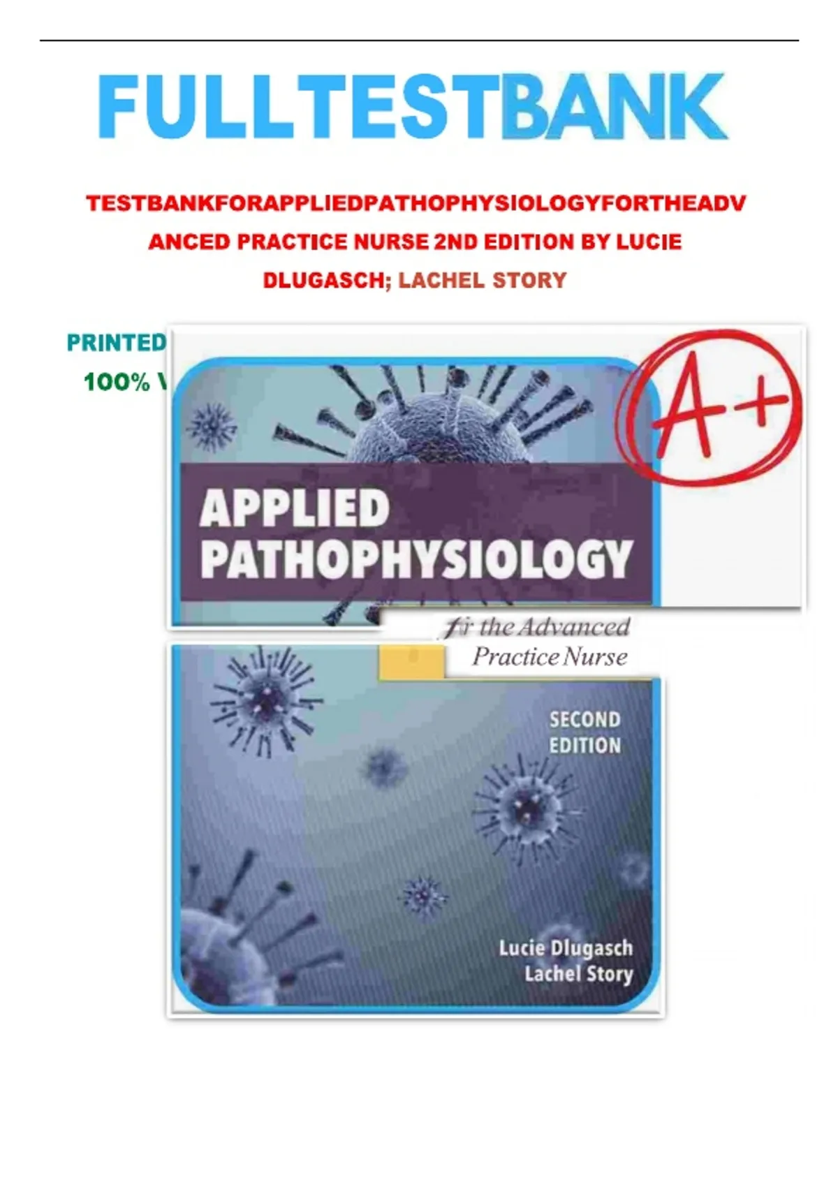 This complete test bank for Applied Pathophysiology for the Advanced Practice Nurse, 2nd Edition by Lucie Dlugasch is a high-yield study resource designed for advanced practice nursing students, nurse practitioner candidates, and graduate-level nursing programs. Covering all chapters, it includes exam-style multiple-choice questions with accurate answers that focus on advanced pathophysiologic concepts, disease mechanisms, clinical manifestations, diagnostic reasoning, and evidence-based management across body systems. Aligned with advanced practice nursing curricula, this resource supports critical thinking, clinical judgment, and integration of pathophysiology into patient-centered care. Ideal for exam preparation, coursework review, and self-assessment, this A+ rated test bank helps learners strengthen foundational and advanced knowledge required for success in graduate nursing education and clinical practice.