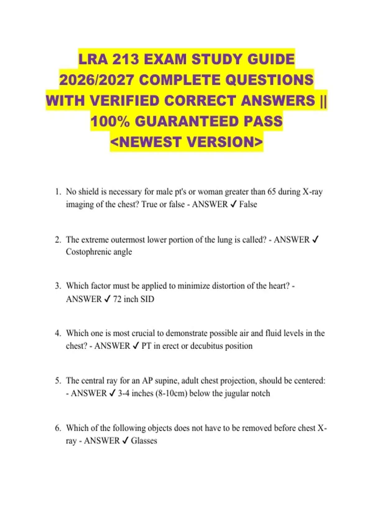 imaging of the chest? True or false - ANSWER ✔ False