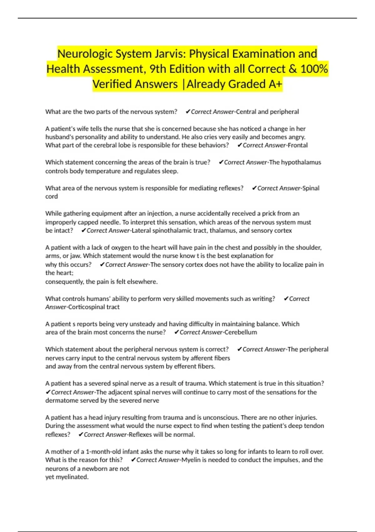 Health Assessment, 9th Edition with all Correct & 100%