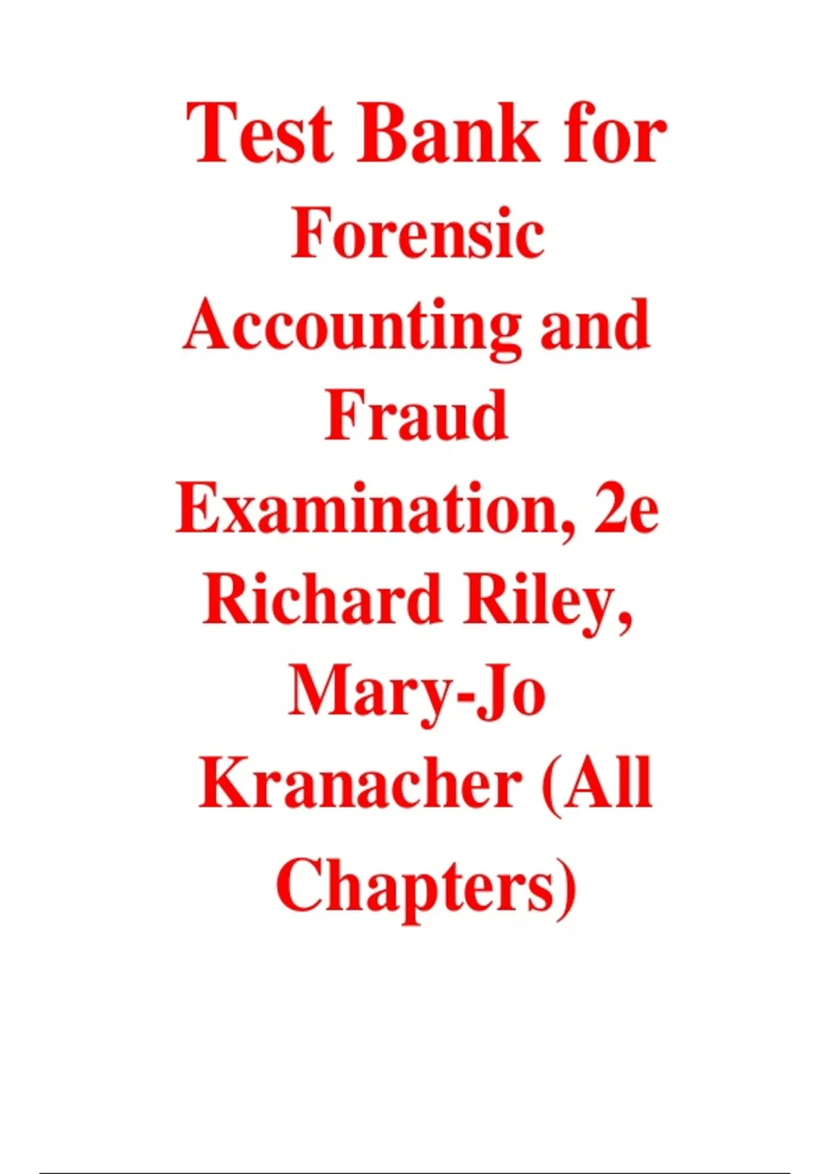 ,Test bank project for Forensic Accounting and Fraud Examination (2nd Ed.) by Mary-Jo Kranacher and Dick Riley