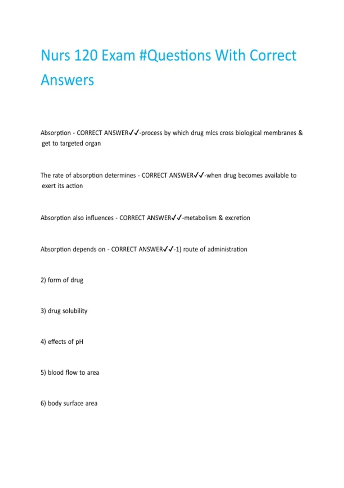 Absorption |depends |on |- |CORRECT |ANSWER✔✔-1) |route |of |administration |