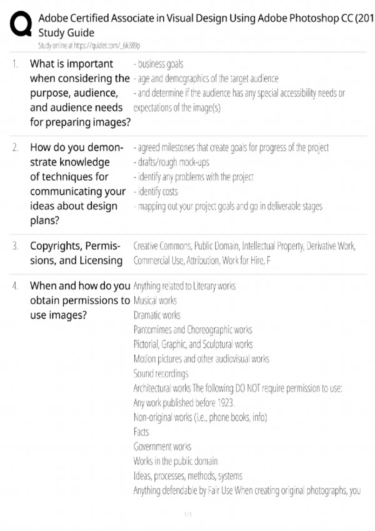 Adobe Certified Associate (ACA) / Score 100% / Visual Design Using Photoshop CC 2018 / Study Guide